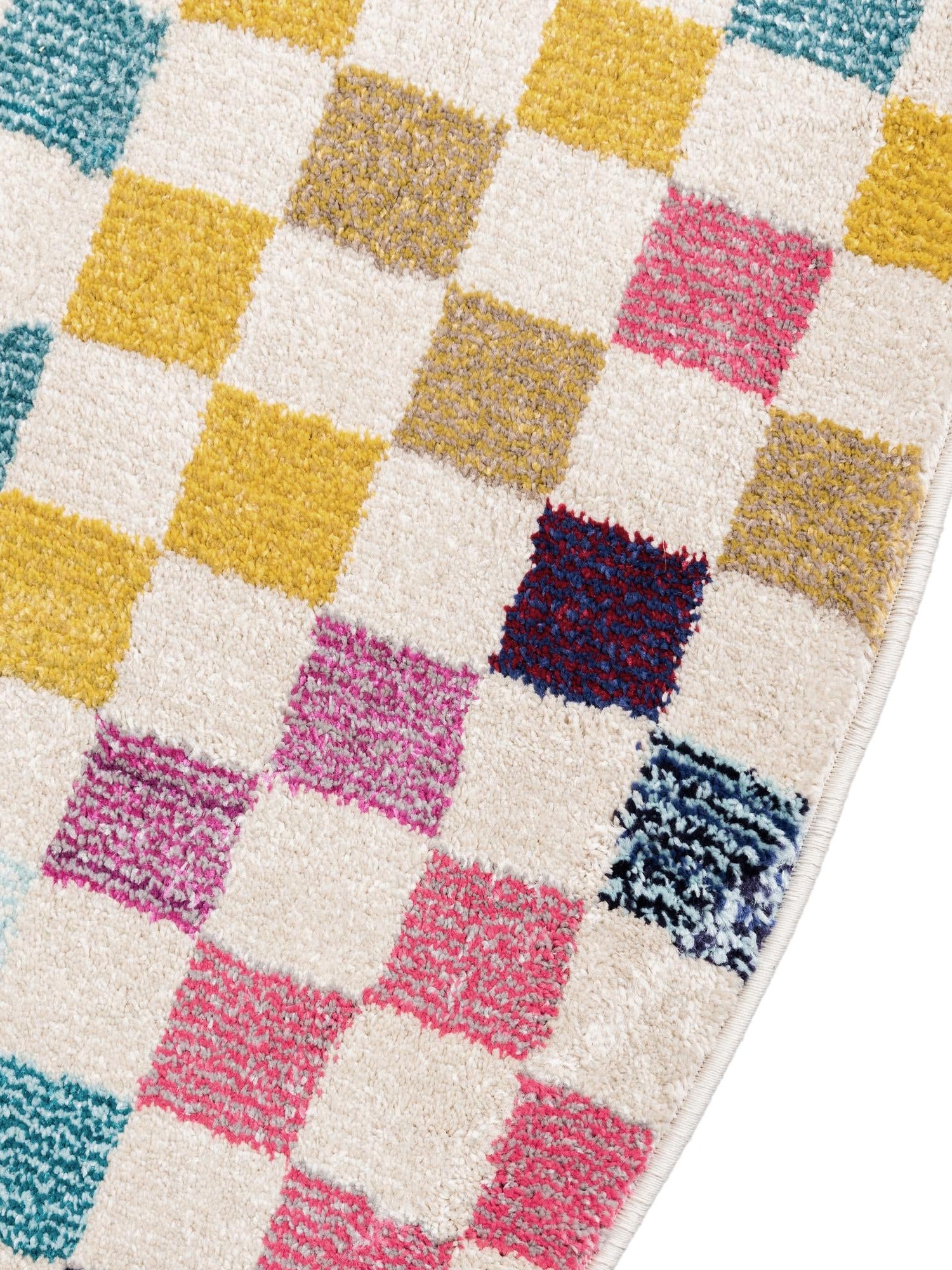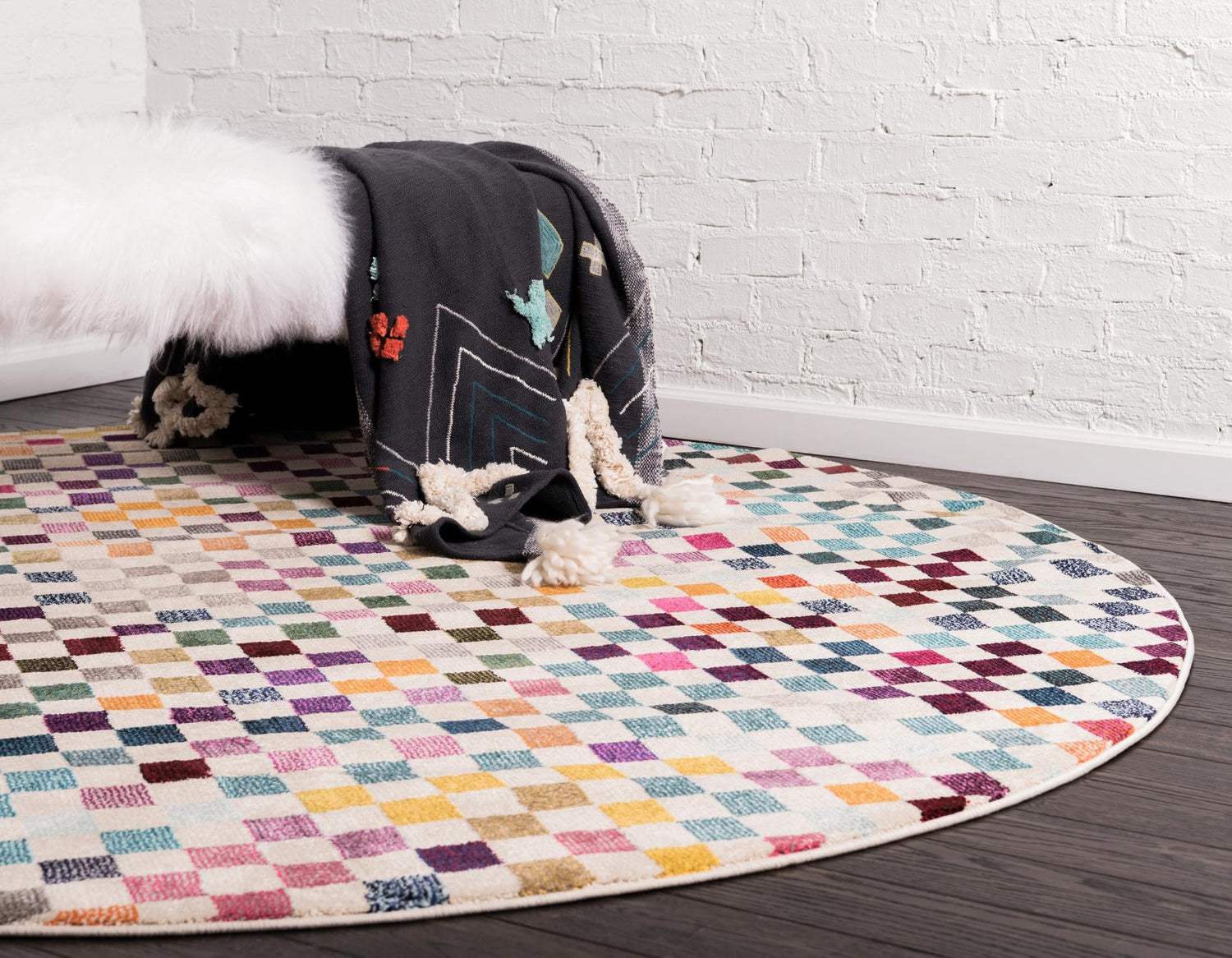 Multicolor 8' x 8' Chromatic Round Area Rug 100% Polypropylene With Cotton Backing Abstract Modern Colorful Carpet Mat for Home Decor & Interior Design