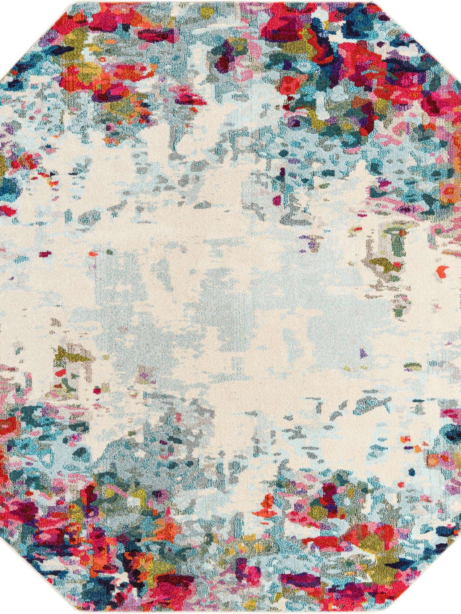 Multicolor 7' 11 x 7' 11 Chromatic Octagon Area Rug 100% Polypropylene With Cotton Backing Abstract Modern Colorful Carpet Mat for Home Decor & Interior Design