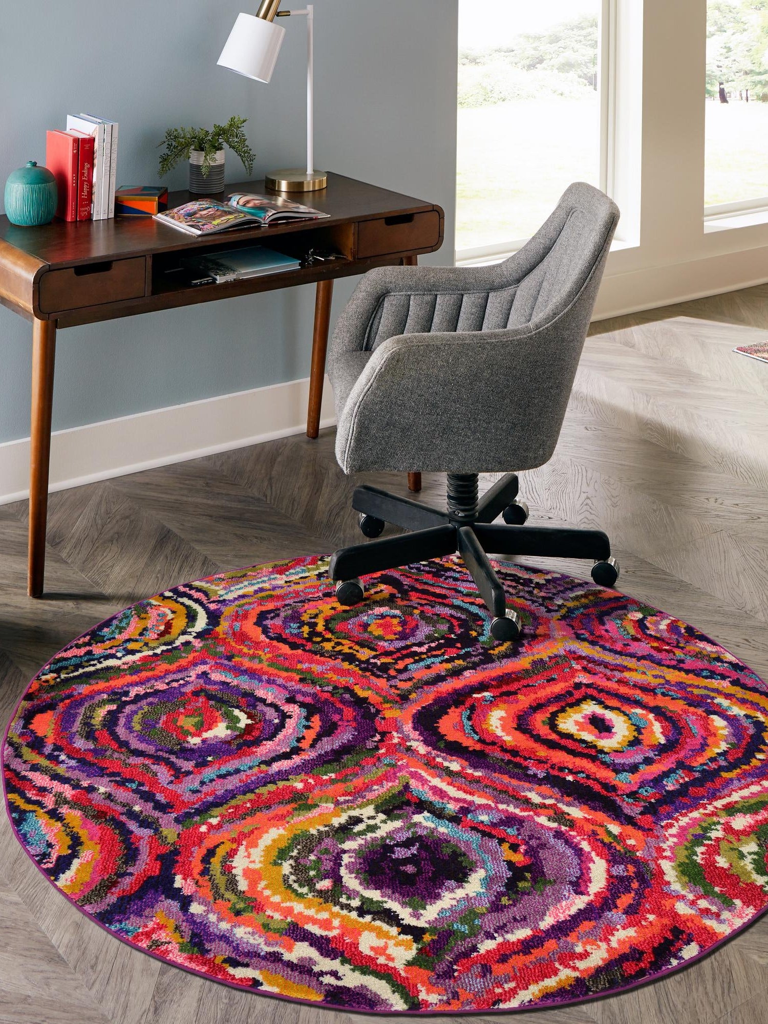 Multicolor 8' x 8' Estrella Round Area Rug 100% Polypropyle...