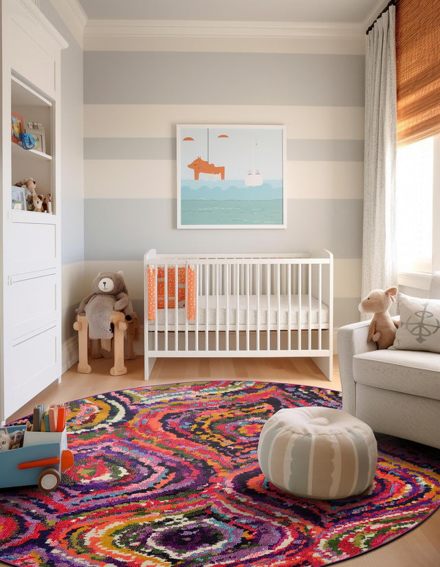 Multicolor 8' x 8' Estrella Round Area Rug 100% Polypropylene Non-Shedding Stain Resistant Carpet Colorful Modern Abstract Design Easy Clean for Home Decor