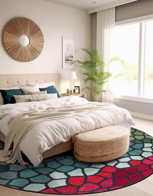 Multicolor 8' x 8' Estrella Round Area Rug 100% Polypropylene Non-Shedding Stain Resistant Carpet Colorful Modern Abstract Design Easy Clean for Home Decor