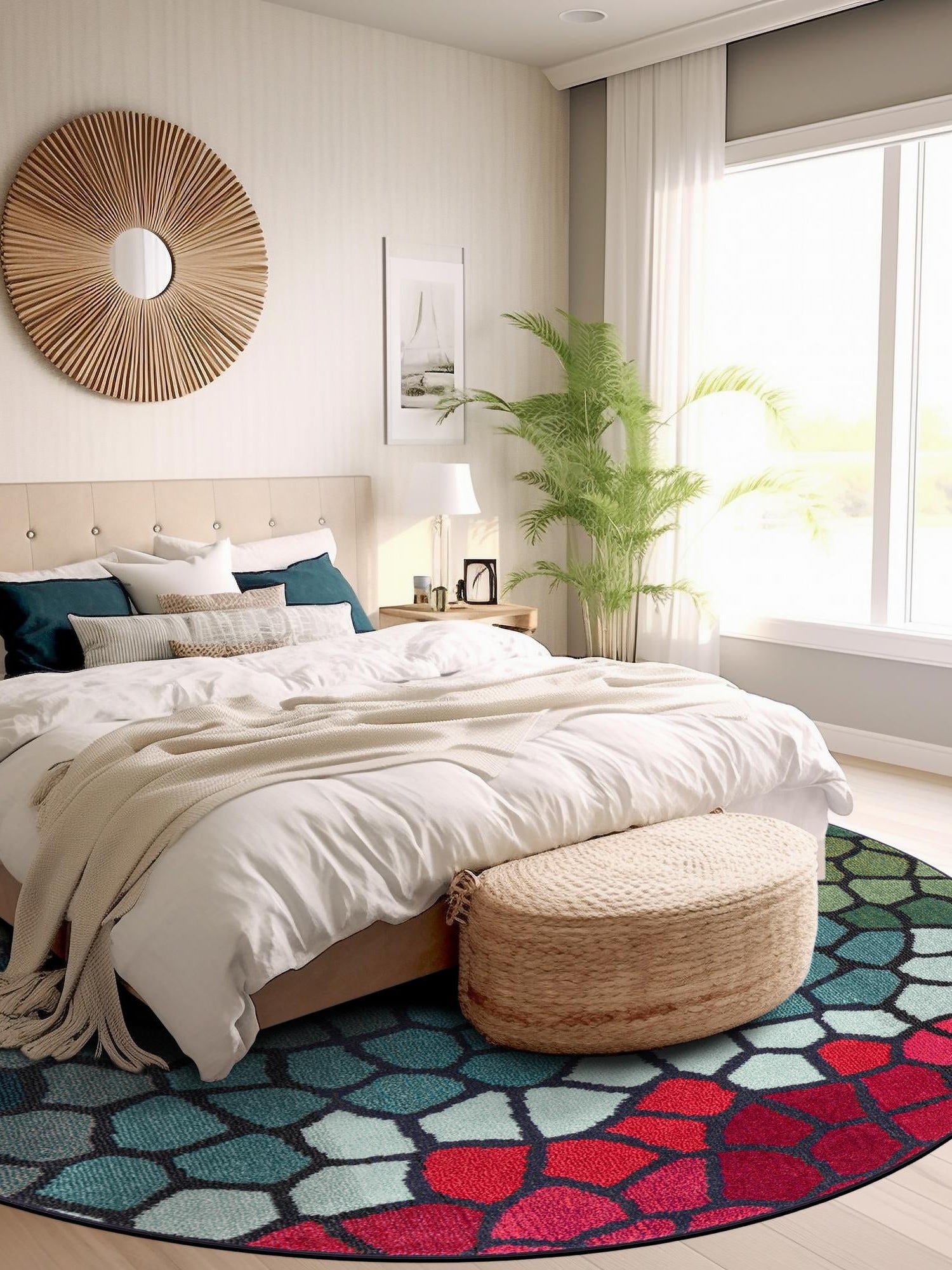 - Generous Size: Measuring 8 feet by 8 feet, this round rug provides ample coverage for your living space. Its generous dimensions make it ideal for both large and small rooms, creating a focal point that enhances any décor. Perfect for living rooms, dining areas, or playrooms, this rug offers versatility in placement.