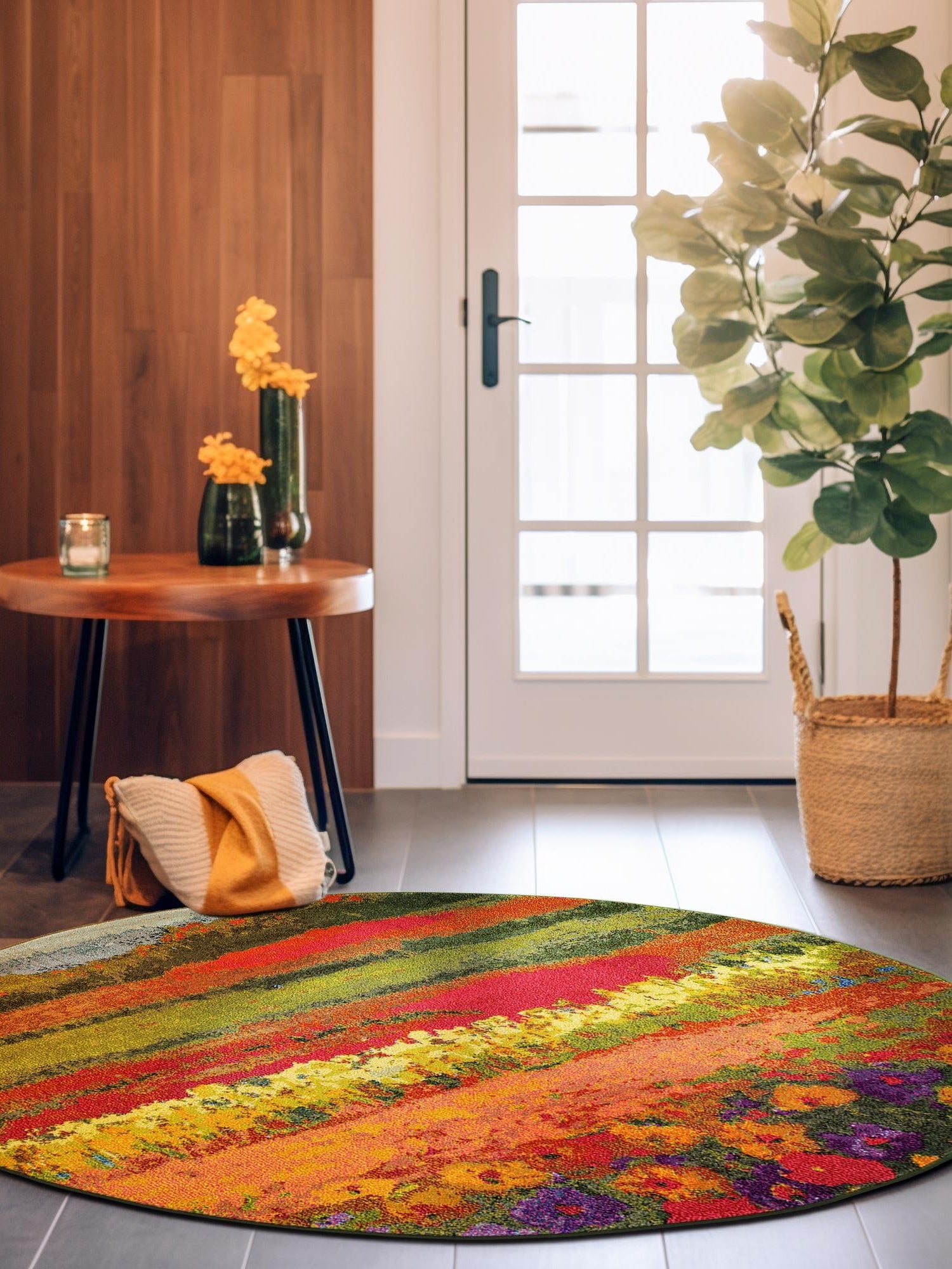 - Vibrant Color Palette: Featuring a multi-colored design, this rug brings a burst of color and style to your decor. The vibrant hues blend seamlessly with various design themes, adding a playful touch to any room. Whether your space is modern, eclectic, or traditional, this rug can enhance the overall ambiance.