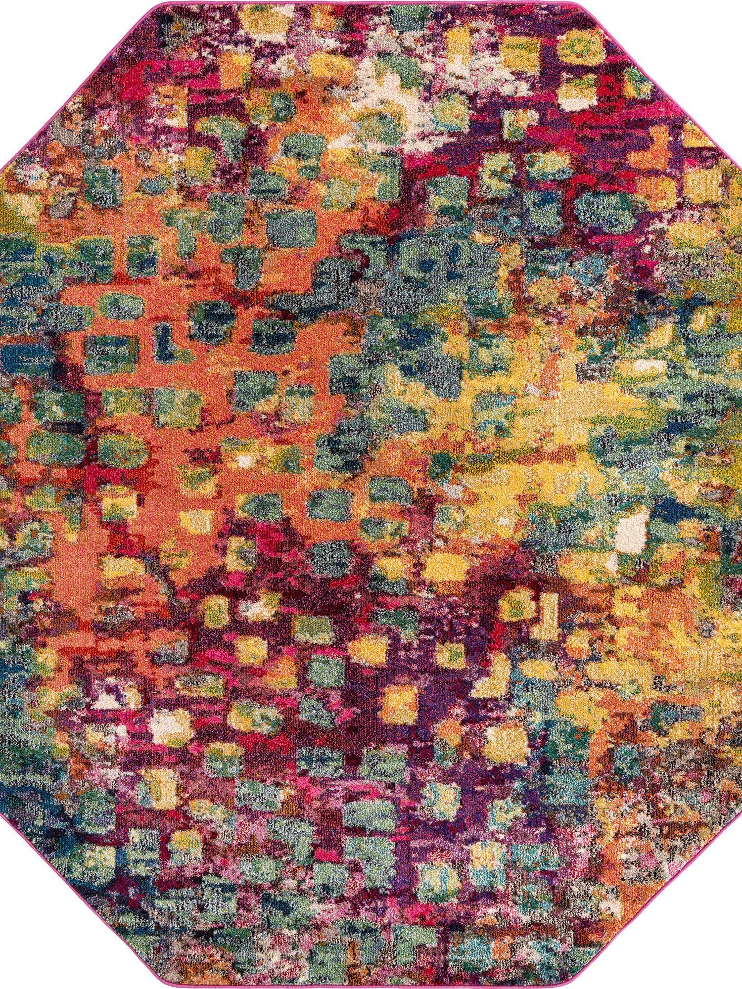 Multicolor 8' x 8' Jardin Octagon Area Rug 100% Polypropylene With Cotton Backing Colorful & Vivid Modern Carpet for Home Decor