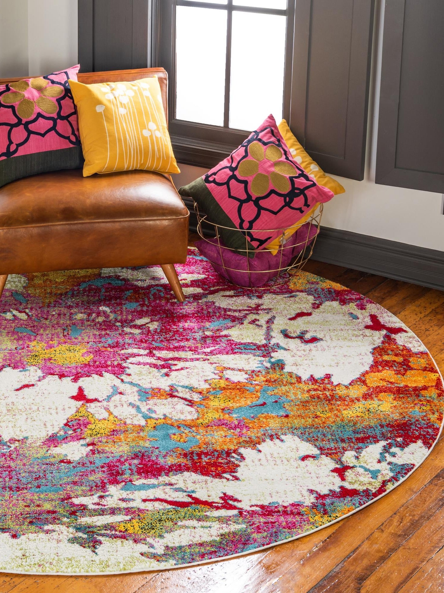 Multicolor 8' x 8' Lyon Round Area Rug Vivid Colorful Abstract Modern 100% Polypropylene Carpet for Living Room, Dining, Office