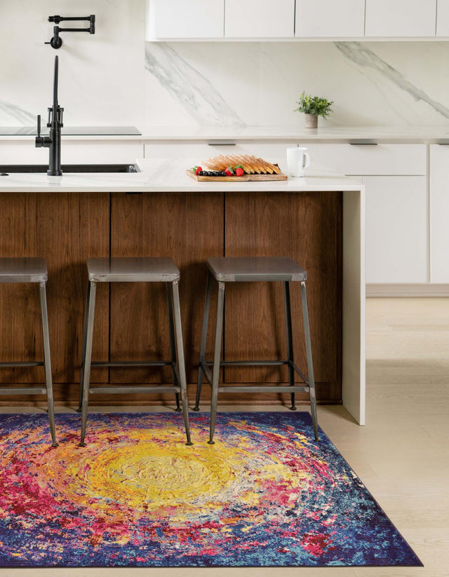 Washable Multicolor 5' x 5' Timeless Round Area Rug Easy to Clean Stain Resistant & Durable