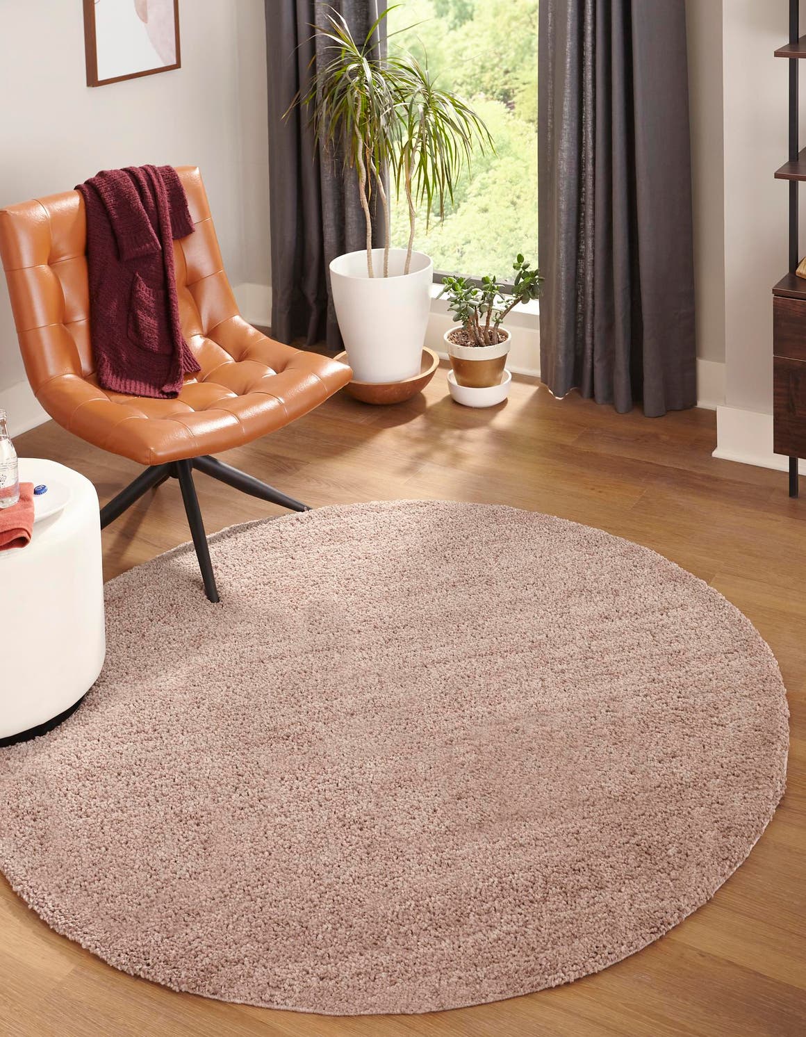 Mushroom 3' 3 x 3' 3 Jill Zarin Shaggy Chic Round Area Rug Thick Soft Touch Fluffy & Plush Shaggy Pile 100% Polyester (Space-Dyed Yarn) With Jute Backing Carpet