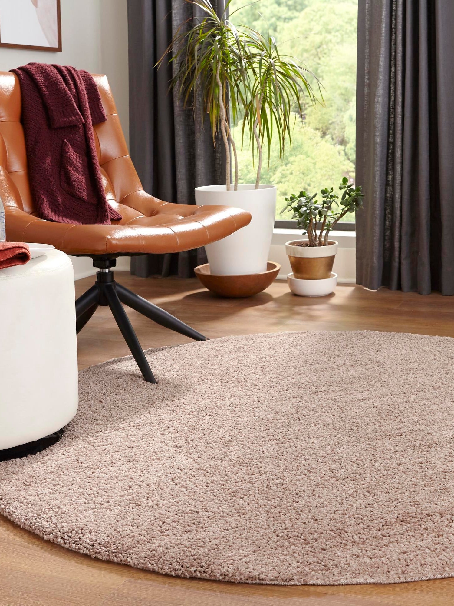 Mushroom 5' 3 x 5' 3 Jill Zarin Shaggy Chic Round Area Rug Thick Soft Touch Fluffy & Plush Shaggy Pile 100% Polyester (Space-Dyed Yarn) With Jute Backing Carpet