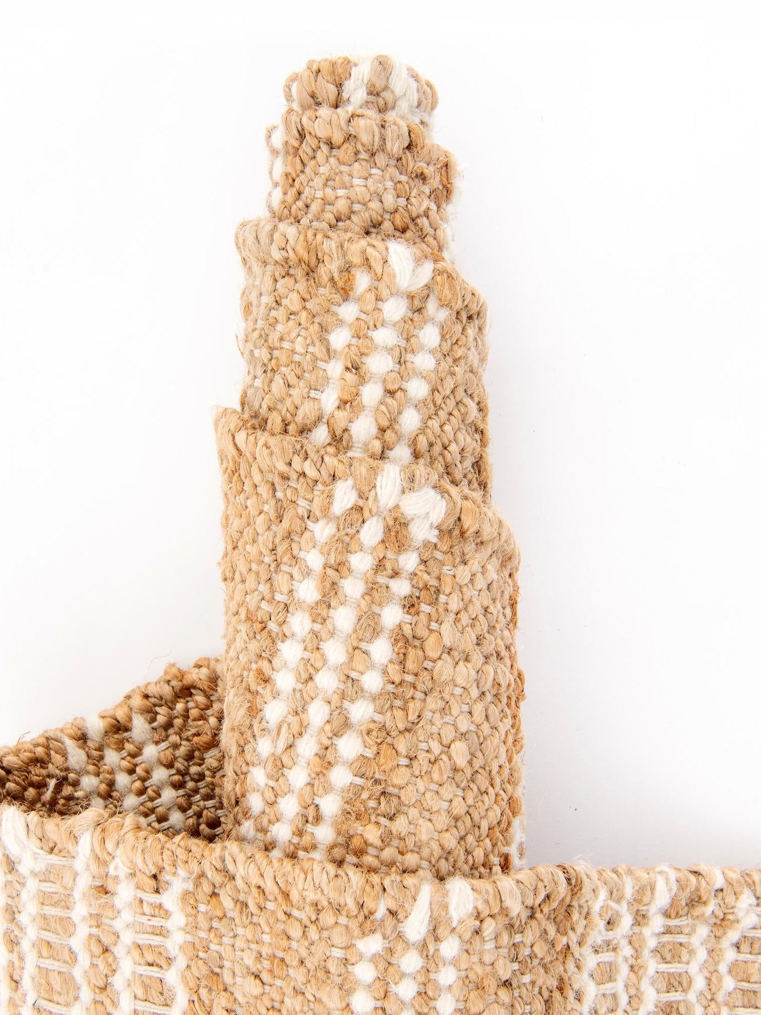 - High-Quality Materials: Crafted from a unique blend of 50% jute, 30% wool, and 20% cotton, this rug offers both durability and comfort. The combination of these natural fibers ensures a soft touch underfoot while maintaining resilience against daily wear and tear. Experience the luxury of a handmade rug that is not only stunning but also practical for everyday use.