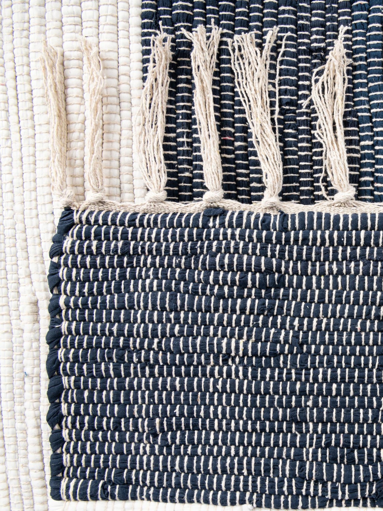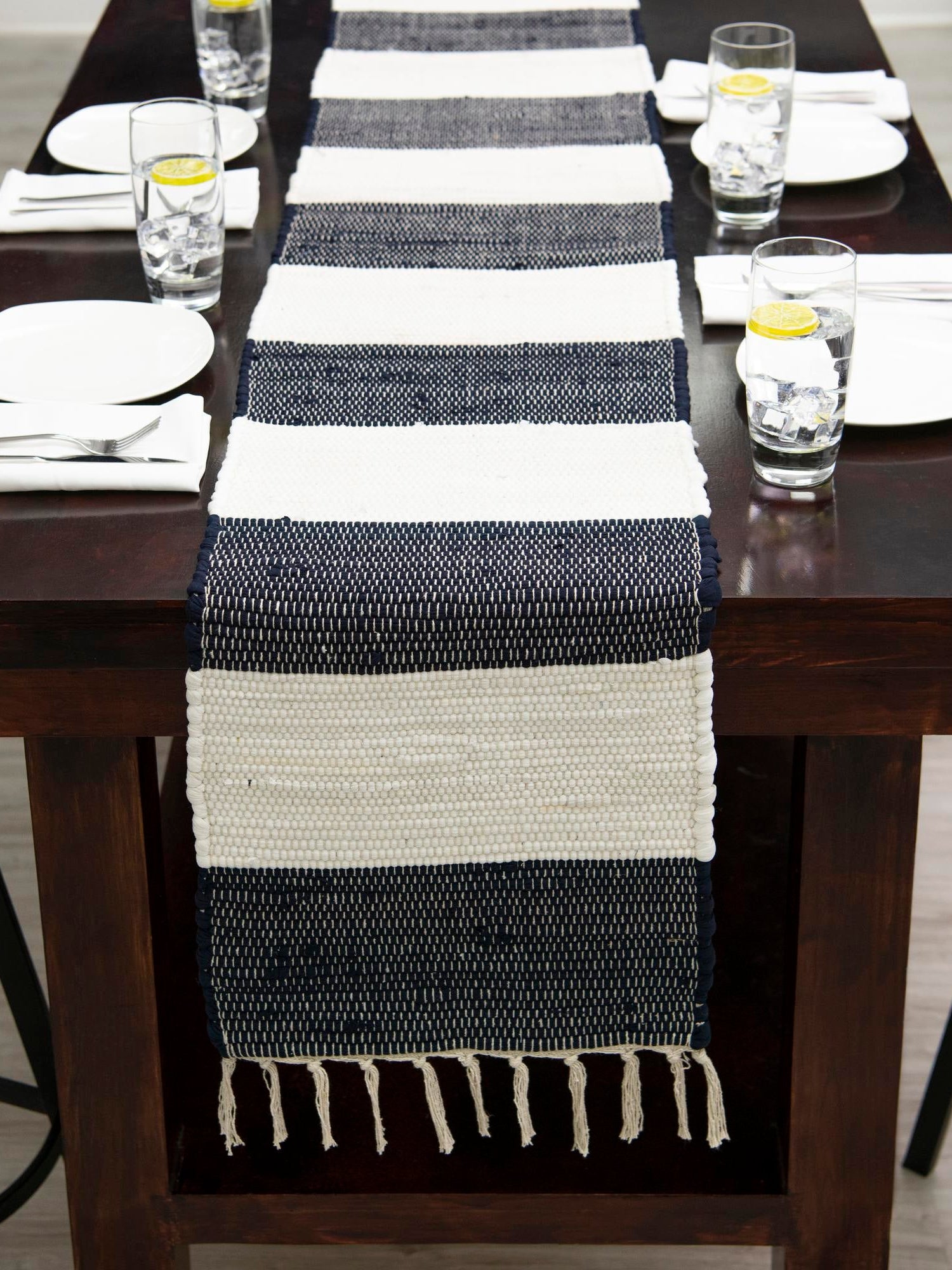 Navy Blue 1' 2 x 5' 1 Chindi Rag Table Runner Area Rug Decorative Dining Room Kitchen All Natural Material Table Cover 100% Cotton All Natural Eco-Friendly Carpet Mat Decor for Homes