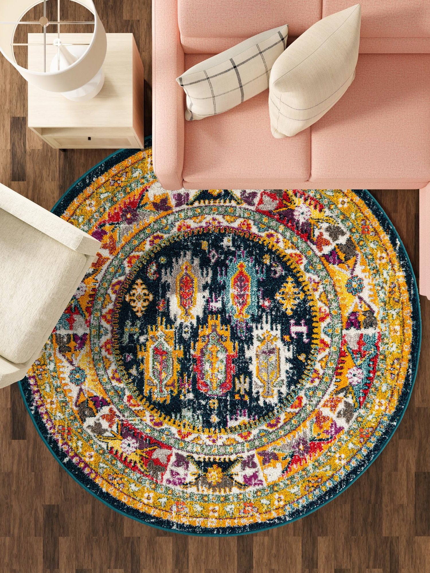 Washable Multicolor 5' x 5' Timeless Round Area Rug Easy to Clean Stain Resistant & Durable