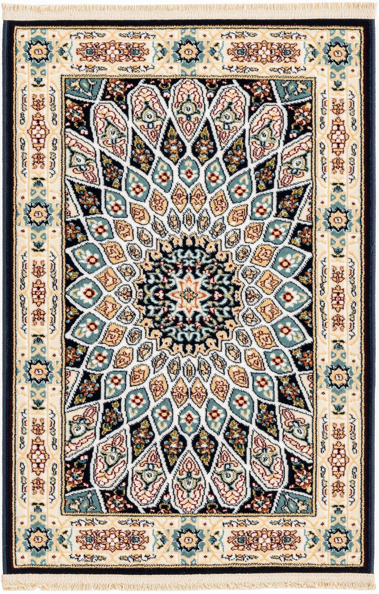 Navy Blue 2' x 3' 1 Narenj Rectangle Area Rug 85% Polypropylene & 15% Polyester Traditional Classic Carpet for Living, Dining, Bedrooms, Office