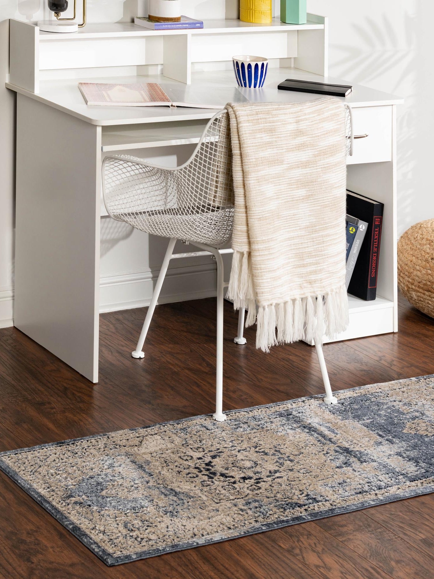 Navy Blue 2' x 6' 9 Chateau Runner Area Rug 85% Polypropyle...