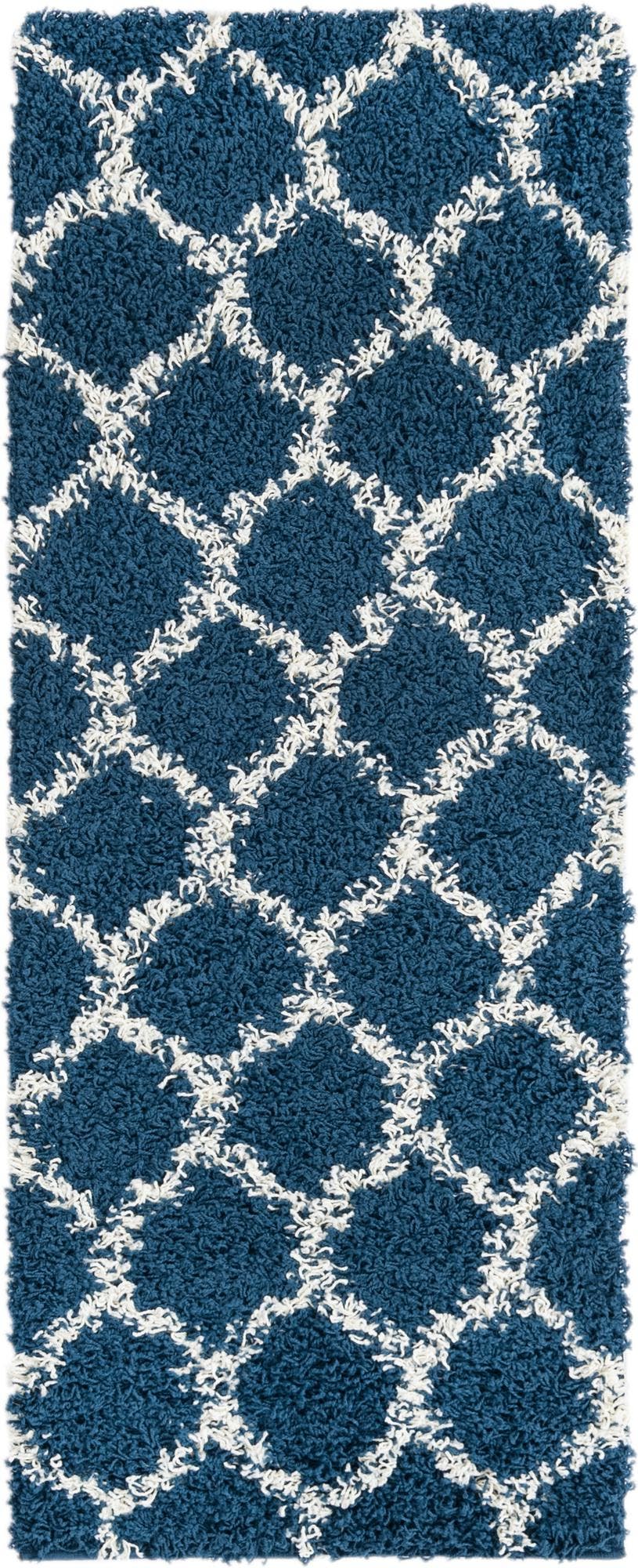 Navy Blue 2' x 5' Trellis Shag Runner Area Rug Thick Soft Touch Fluffy & Plush Shaggy Pile