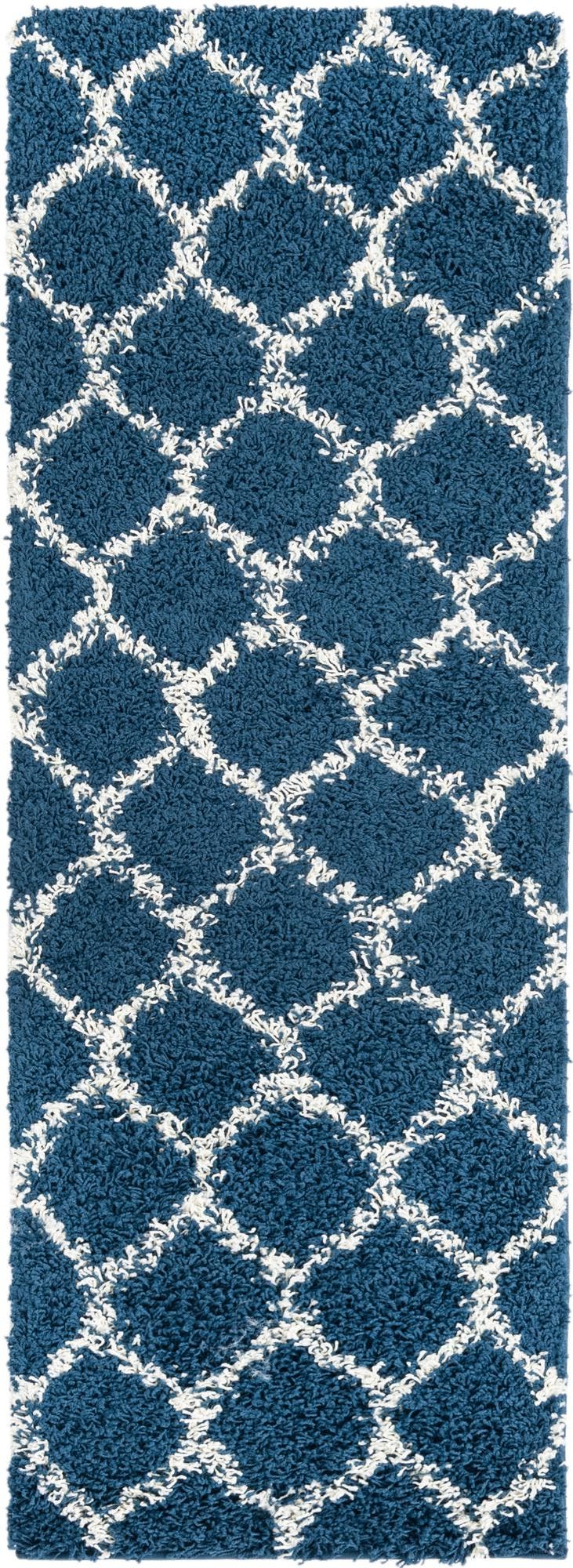 Navy Blue 2' x 6' Trellis Shag Runner Area Rug Thick Soft T...
