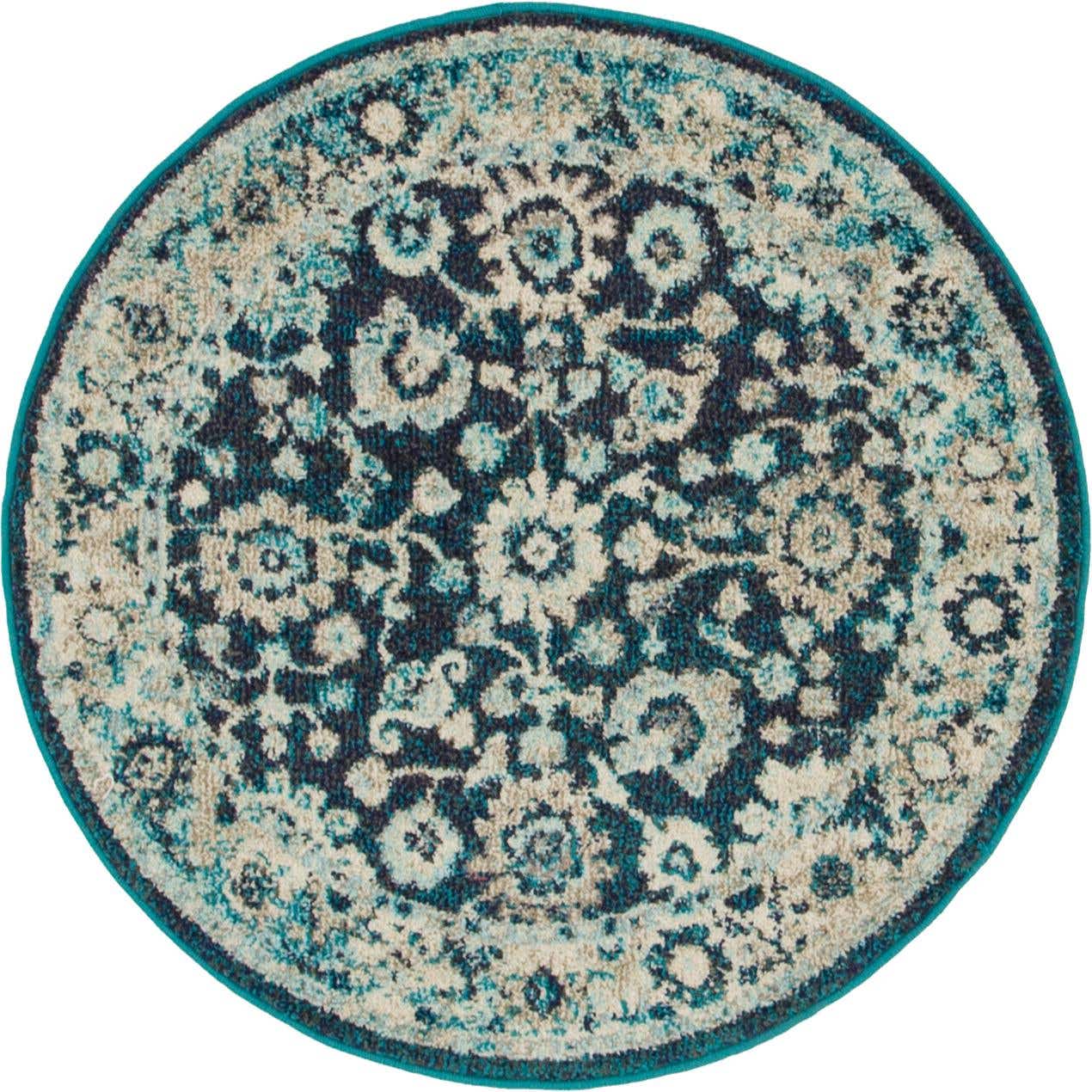Washable Blue 5' x 5' Timeless Round Area Rug Easy to Clean Stain Resistant & Durable