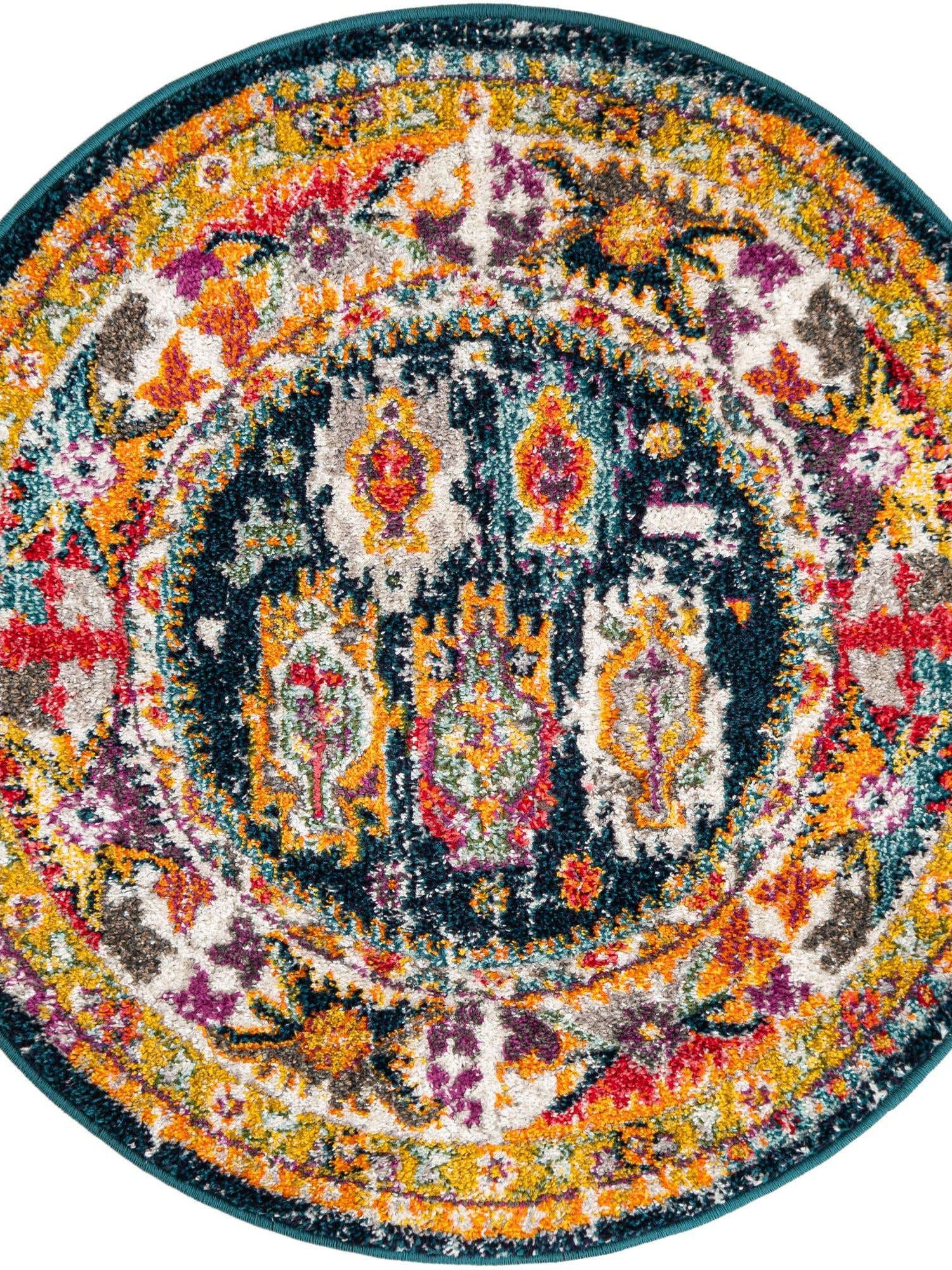 Washable Multicolor 5' x 5' Timeless Round Area Rug Easy to Clean Stain Resistant & Durable