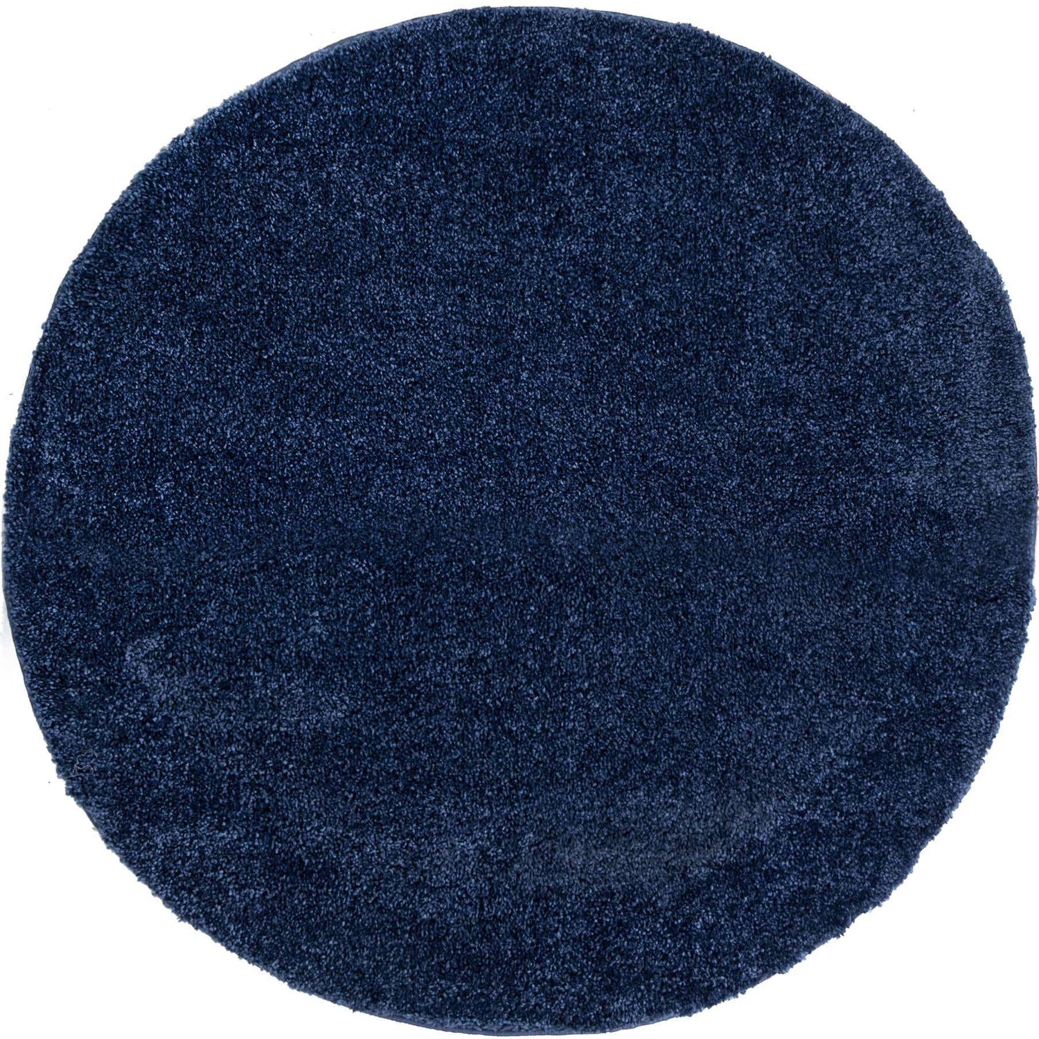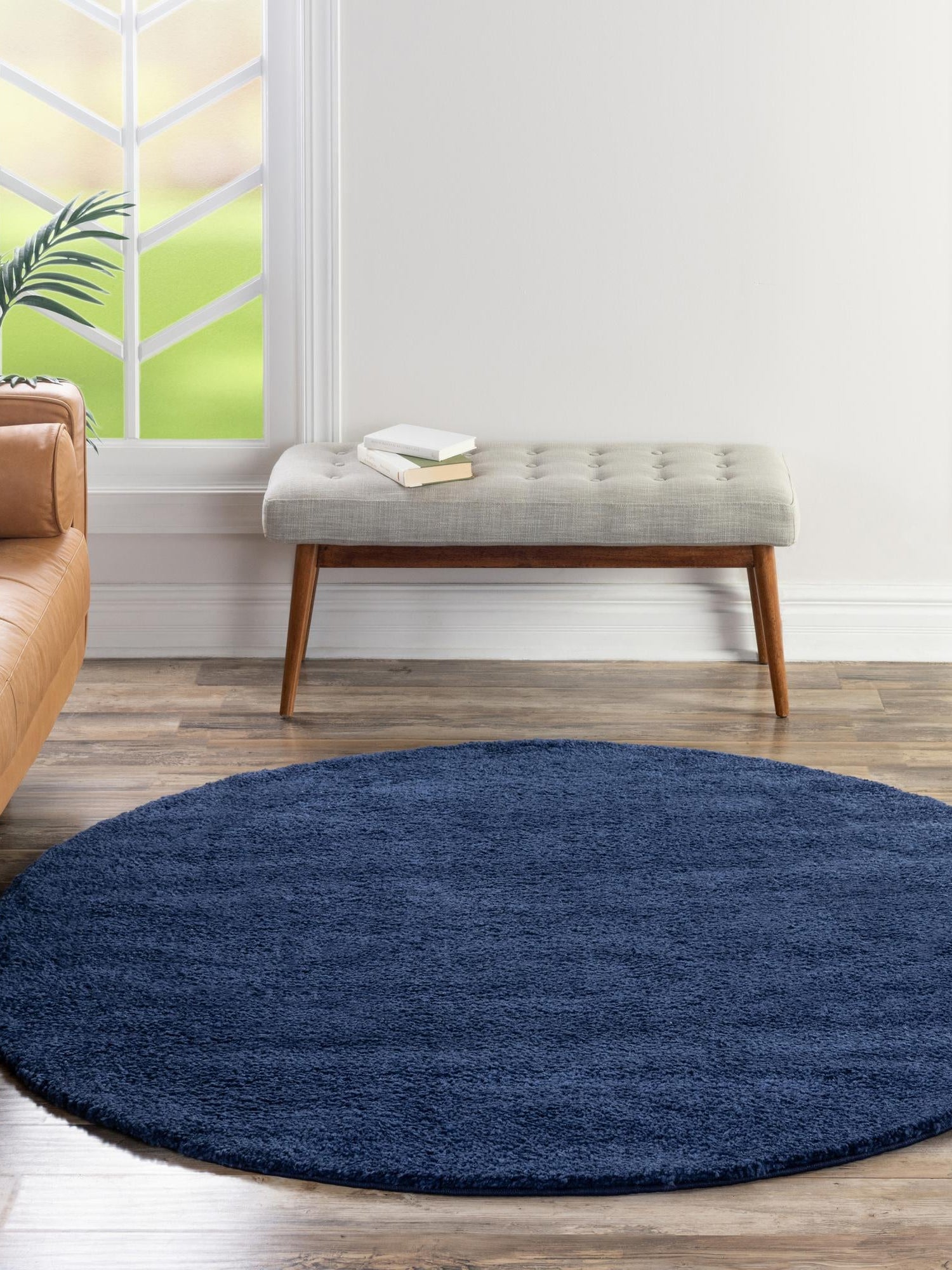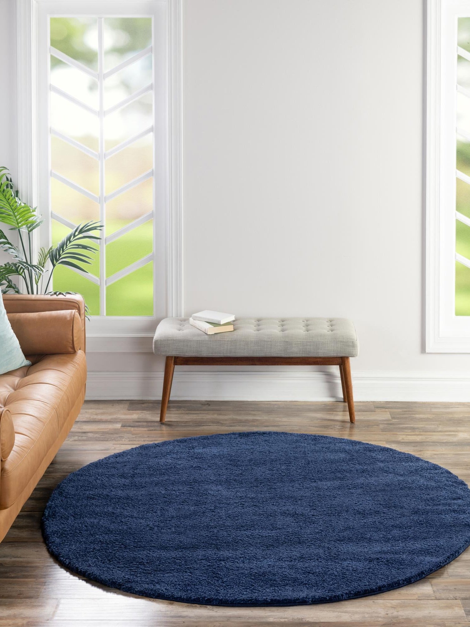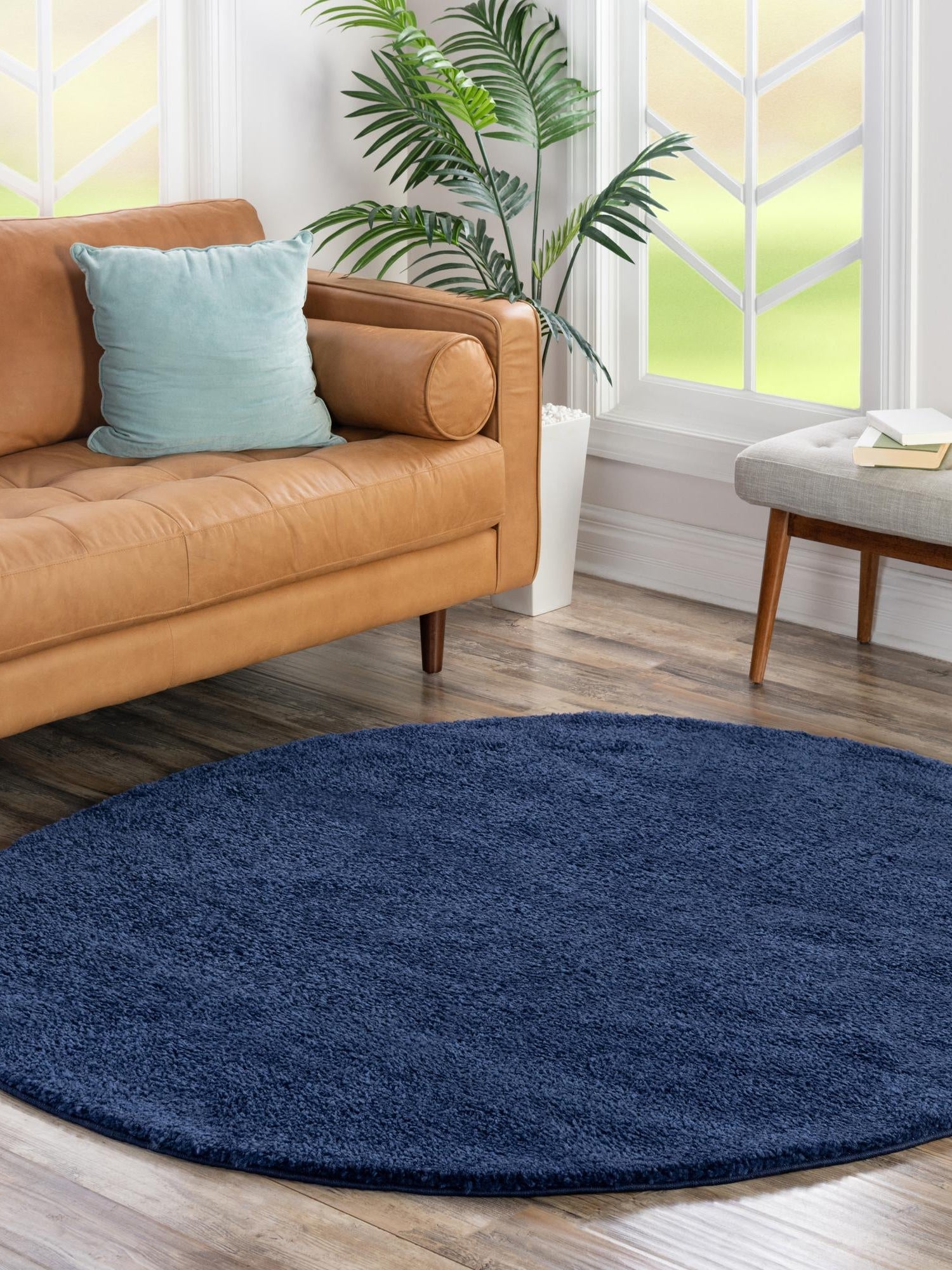 Navy Blue 3' 3 x 3' 3 Solo Round Area Rug Thick Soft Touch Fluffy & Plush Shaggy Pile