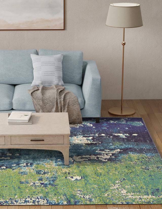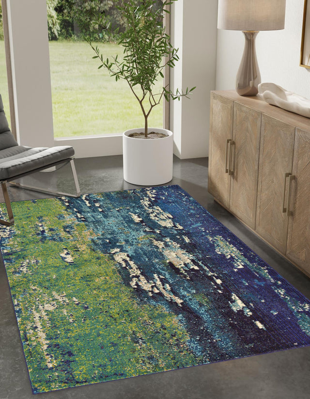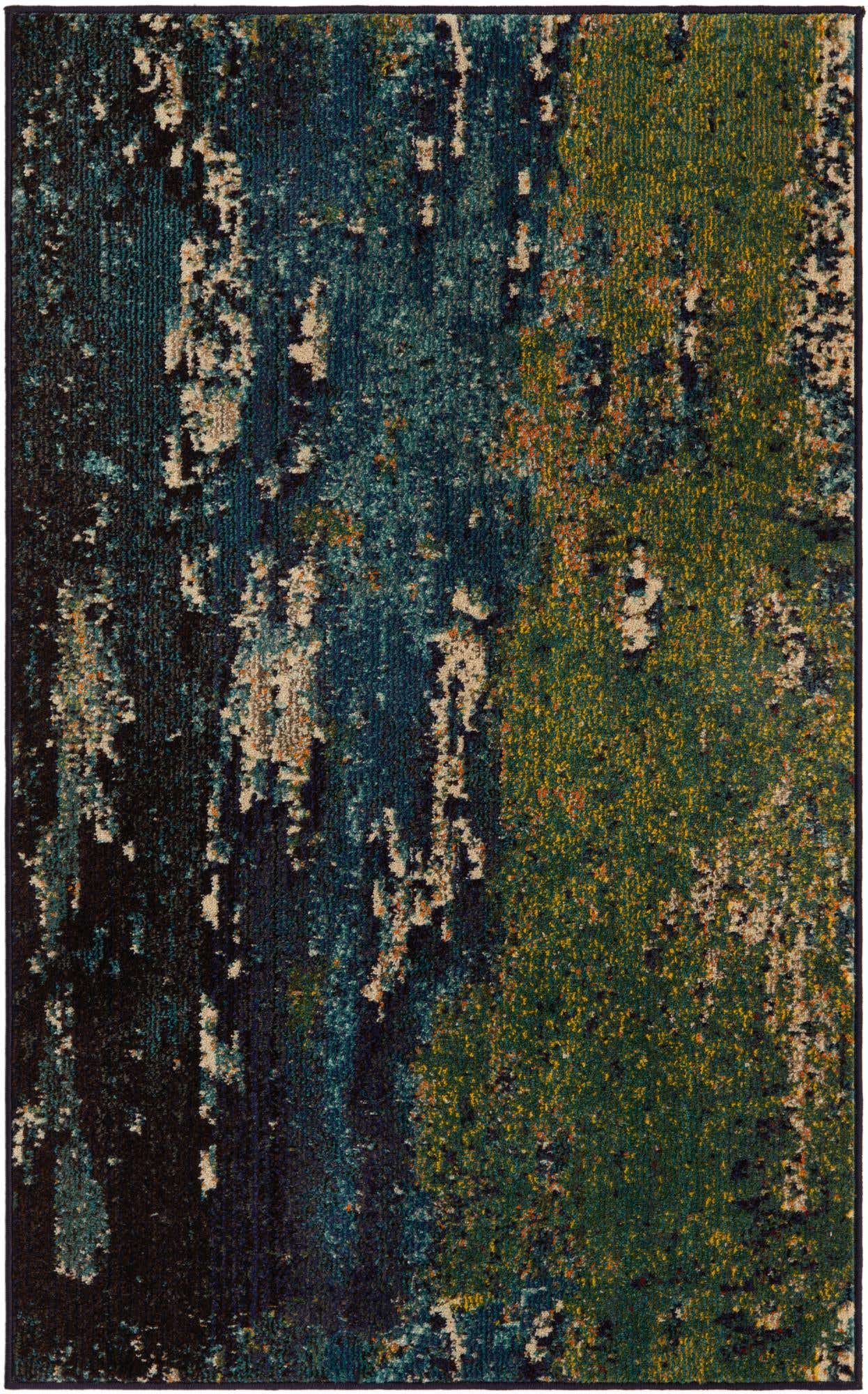Navy Blue 3' 3 x 5' 3 Estrella Rectangle Area Rug 100% Polypropylene Non-Shedding Stain Resistant Carpet Colorful Modern Abstract Design Easy Clean for Home Decor