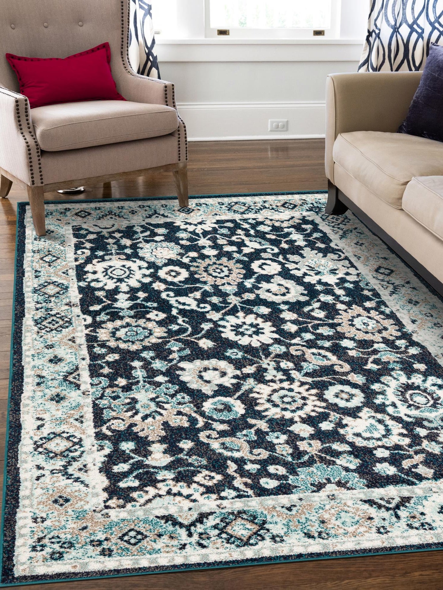 Washable Gray Blue 2' x 3' 1 Renaissance Rectangle Area Rug Easy to Clean Stain Resistant & Durable