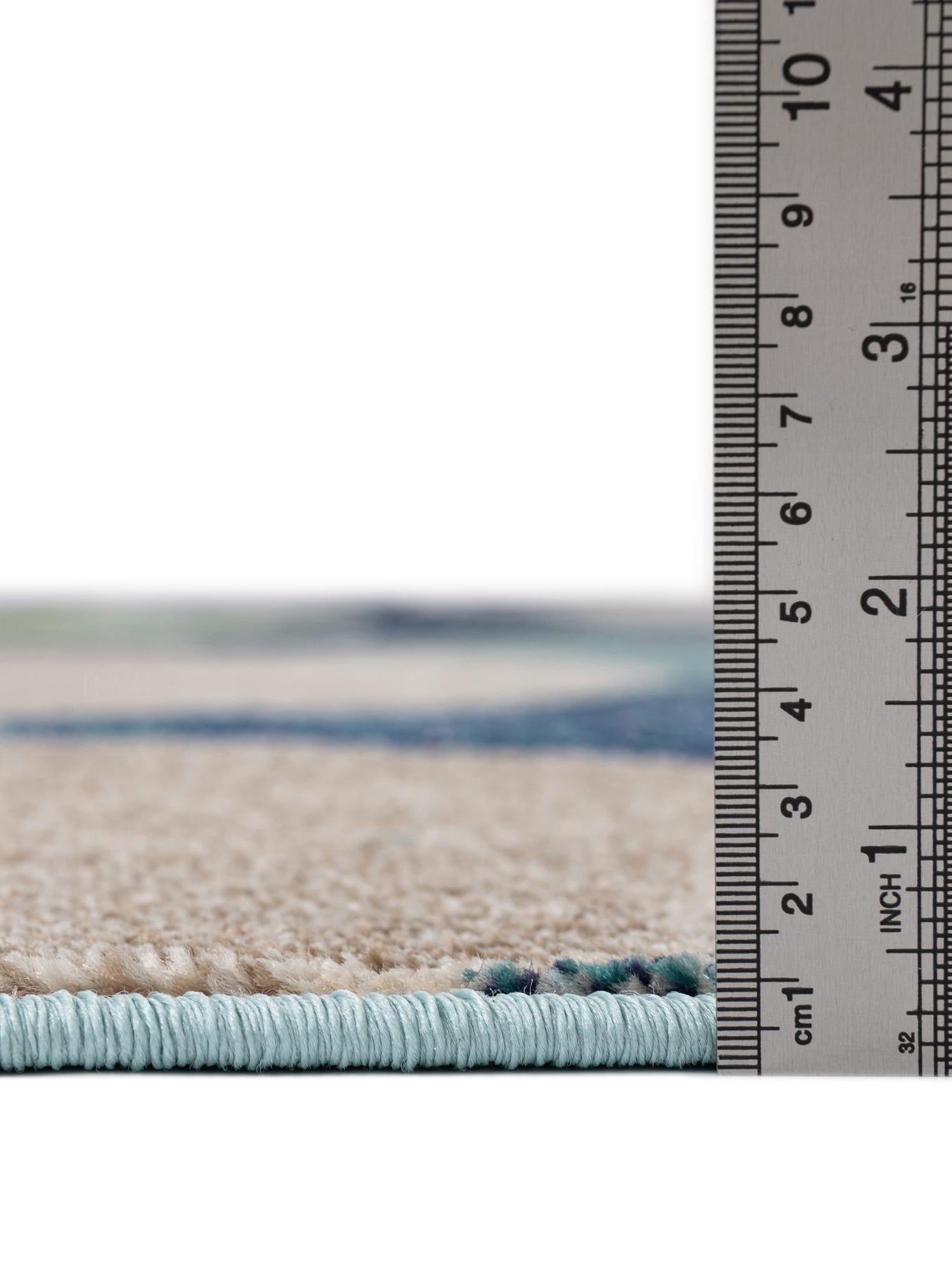 Washable Blue 5' x 5' Timeless Round Area Rug Easy to Clean Stain Resistant & Durable