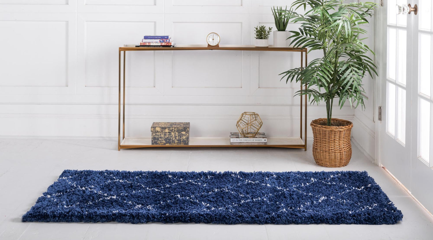 Navy Blue 2' 7 x 6' 1 Rabat Shag Runner Area Rug Thick Soft Touch Fluffy & Plush Shaggy Pile