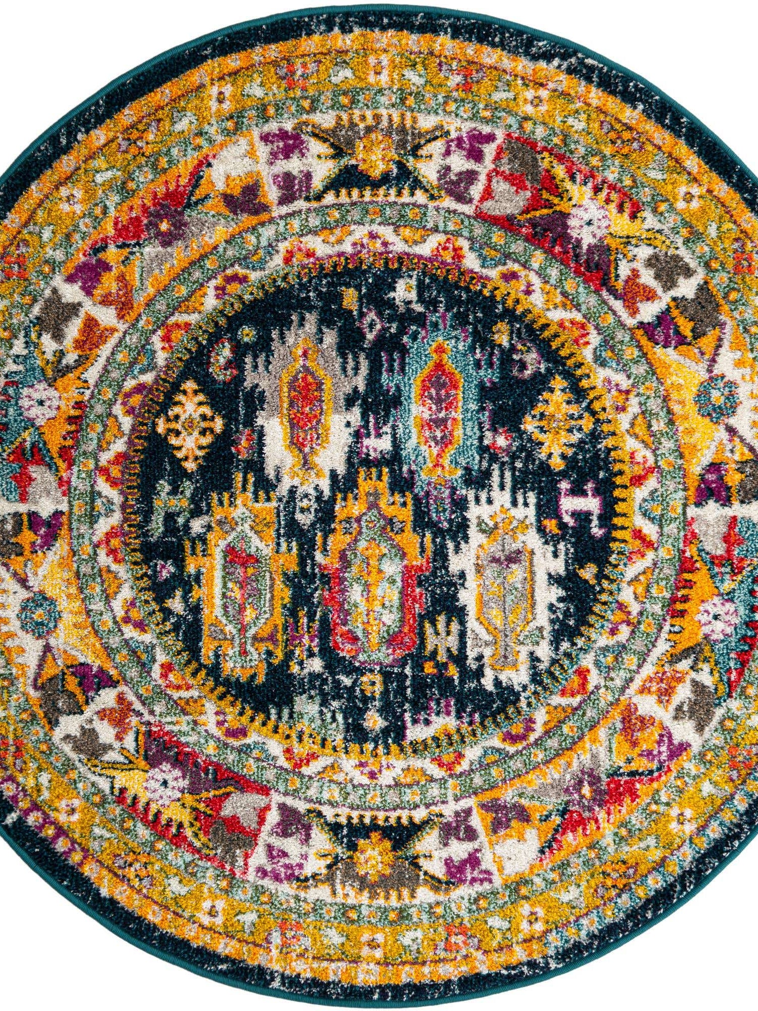 Washable Multicolor 5' x 5' Timeless Round Area Rug Easy to Clean Stain Resistant & Durable