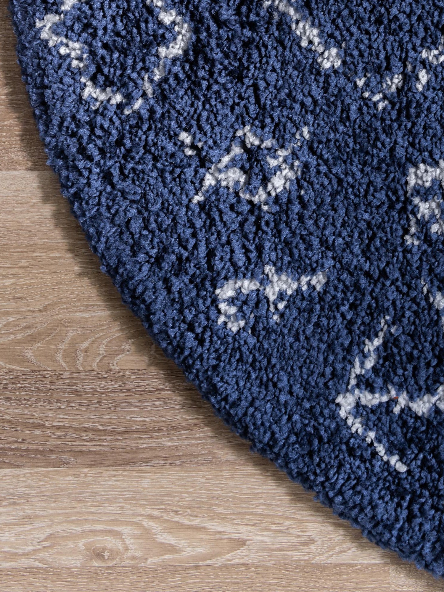 Navy Blue 5' 1 x 5' 1 Rabat Shag Round Area Rug Thick Soft ...