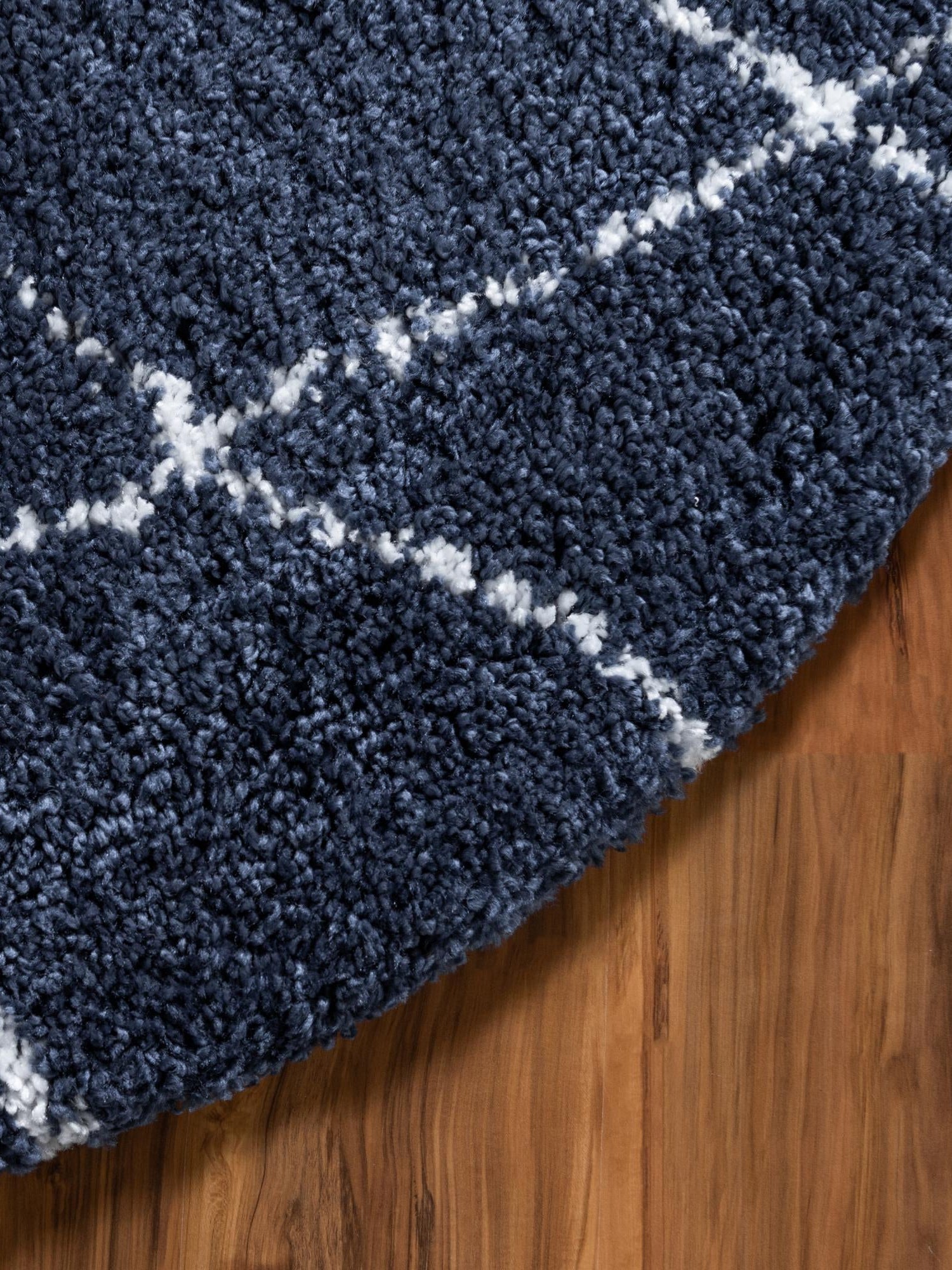 Navy Blue 5' 1 x 5' 1 Rabat Shag Round Area Rug Thick Soft ...
