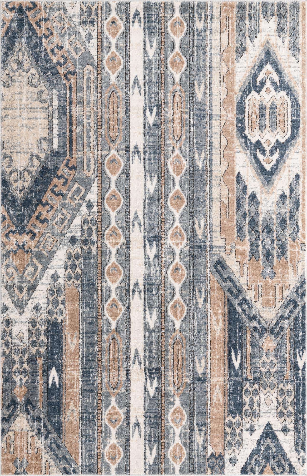 Navy Blue 5' 3 x 8' Portland Rectangle Area Rug 85% Polypropylene & 15% Polyester Vintage Distressed Traditional Carpet for Home Decor