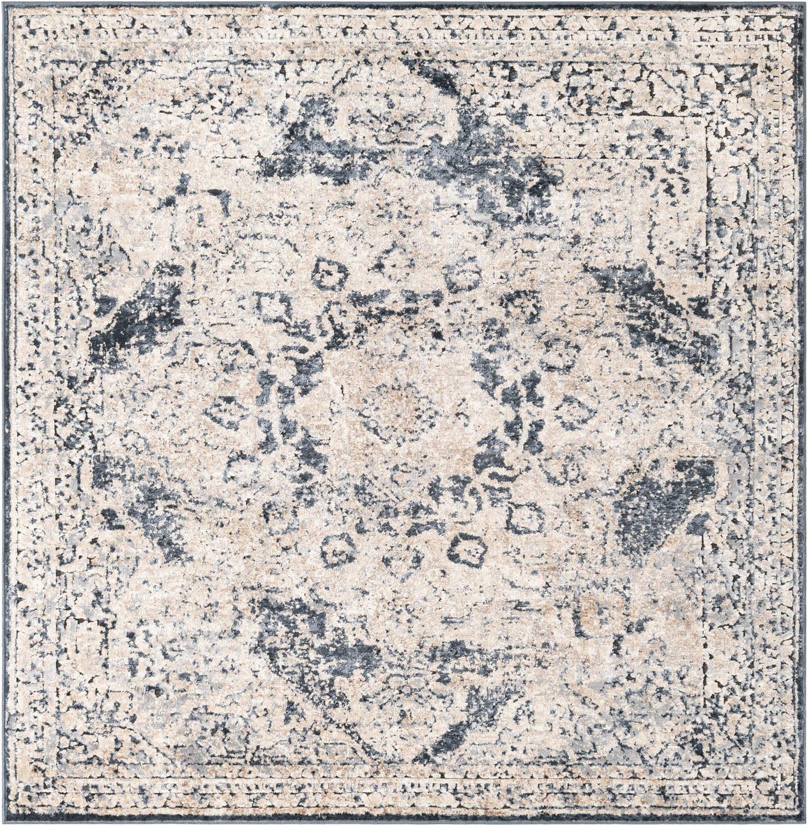 Navy Blue 5' 3 x 5' 3 Chateau Square Area Rug 85% Polypropylene & 15% Chenille With Cotton Backing Traditional Vintage Distressed Carpet for Classical Interior Design Decorating