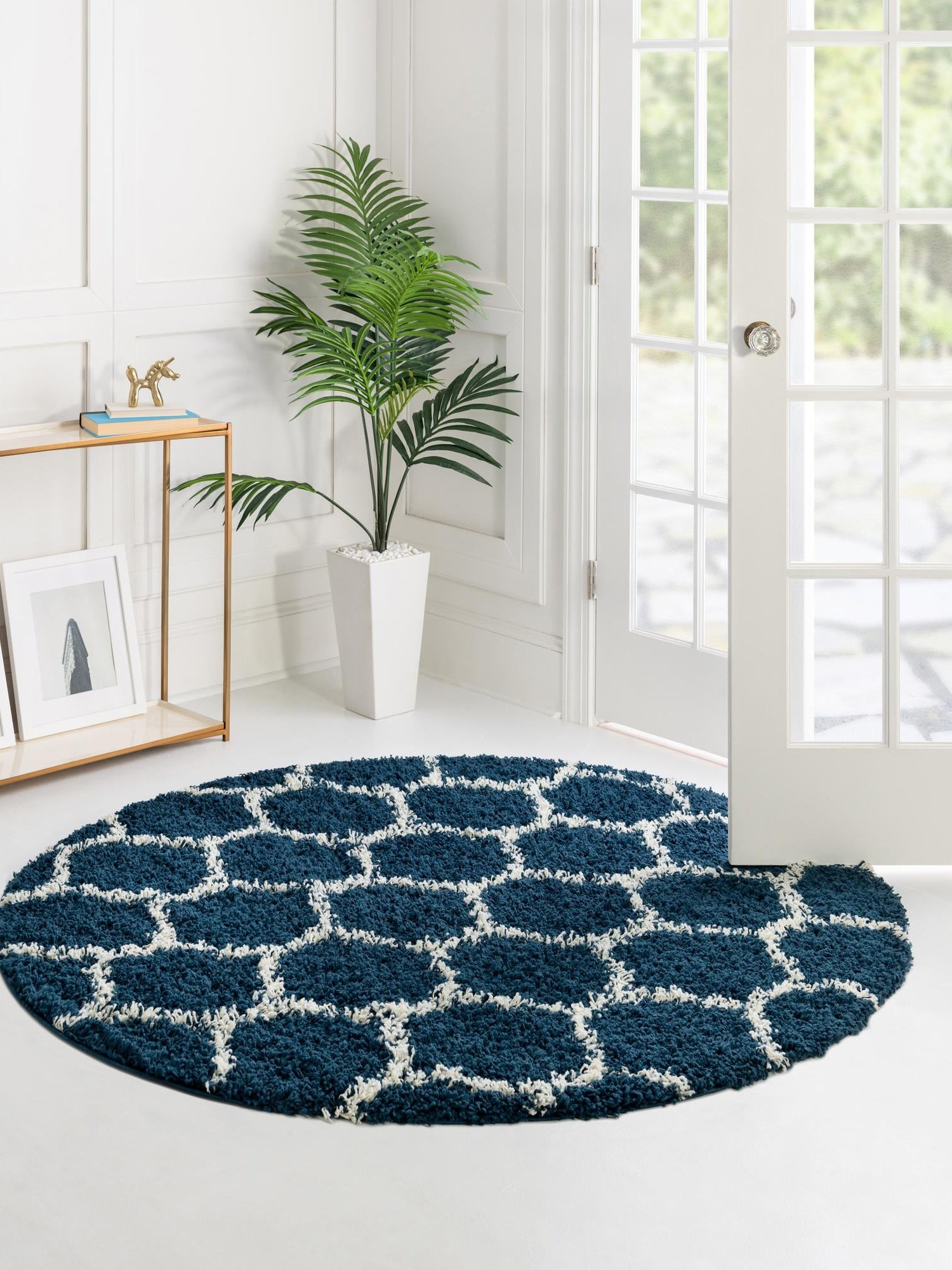 Navy Blue 5' 3 x 5' 3 Trellis Shag Round Area Rug Thick Sof...