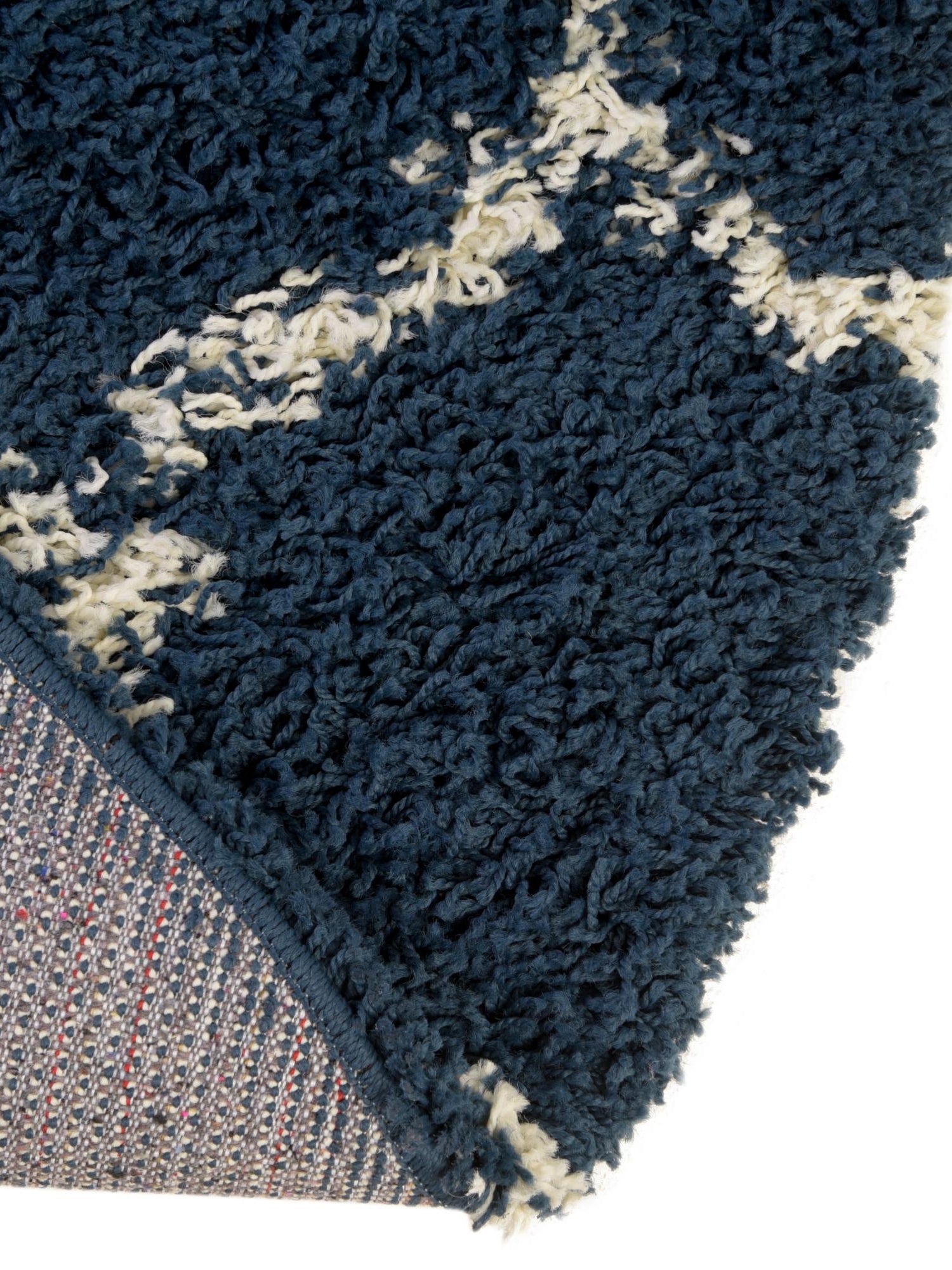 Navy Blue 5' 3 x 5' 3 Trellis Shag Round Area Rug Thick Soft Touch Fluffy & Plush Shaggy Pile