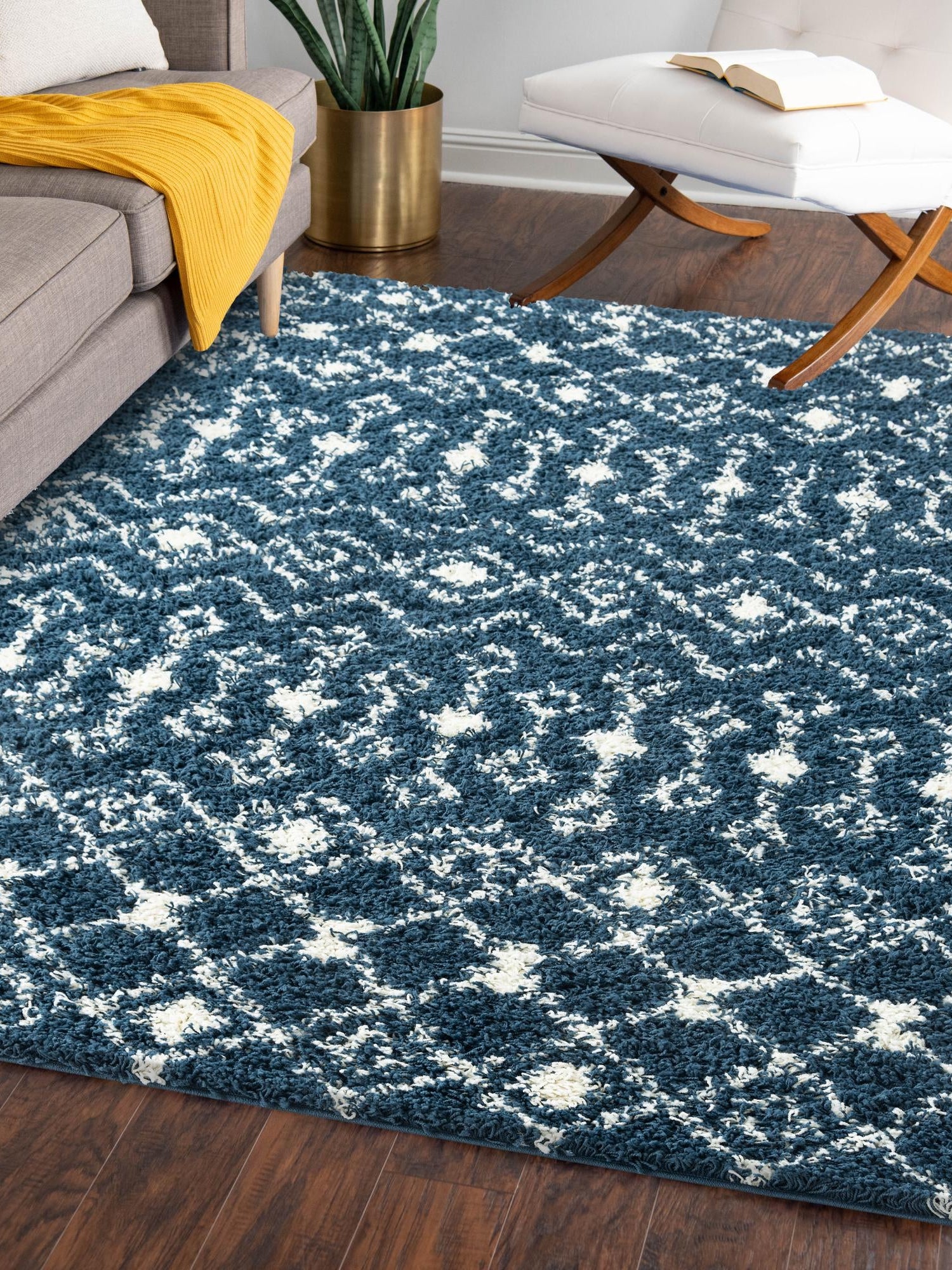 - Stylish Design: Featuring a geometric Moroccan trellis pattern, this rug embodies a modern and chic style. The shag texture adds warmth and comfort, making it a delightful addition to your flooring. Its unique design elements allow it to be the focal point of your room while blending effortlessly with existing furnishings.