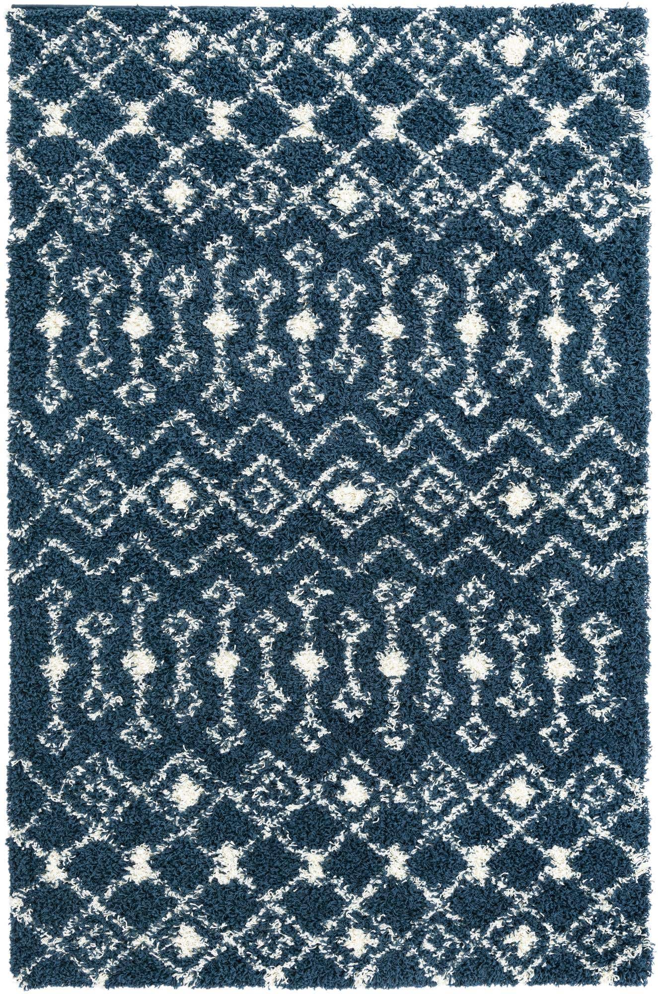 Navy Blue 5' 3 x 8' Moroccan Trellis Shag Rectangle Area Ru...