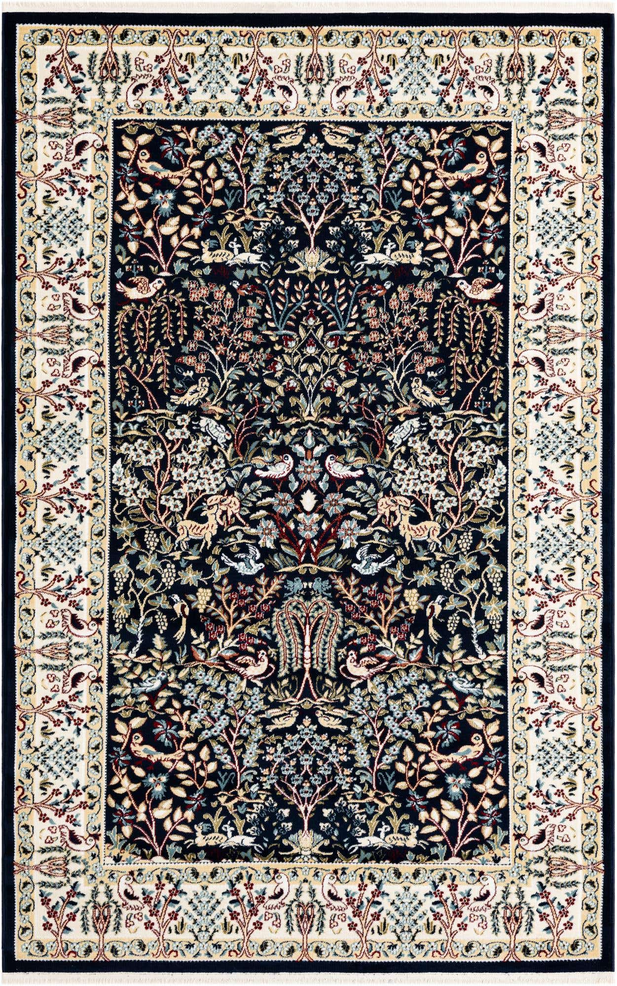 Navy Blue 5' 3 x 8' Narenj Rectangle Area Rug 85% Polypropylene & 15% Polyester Traditional Classic Carpet for Living, Dining, Bedrooms, Office