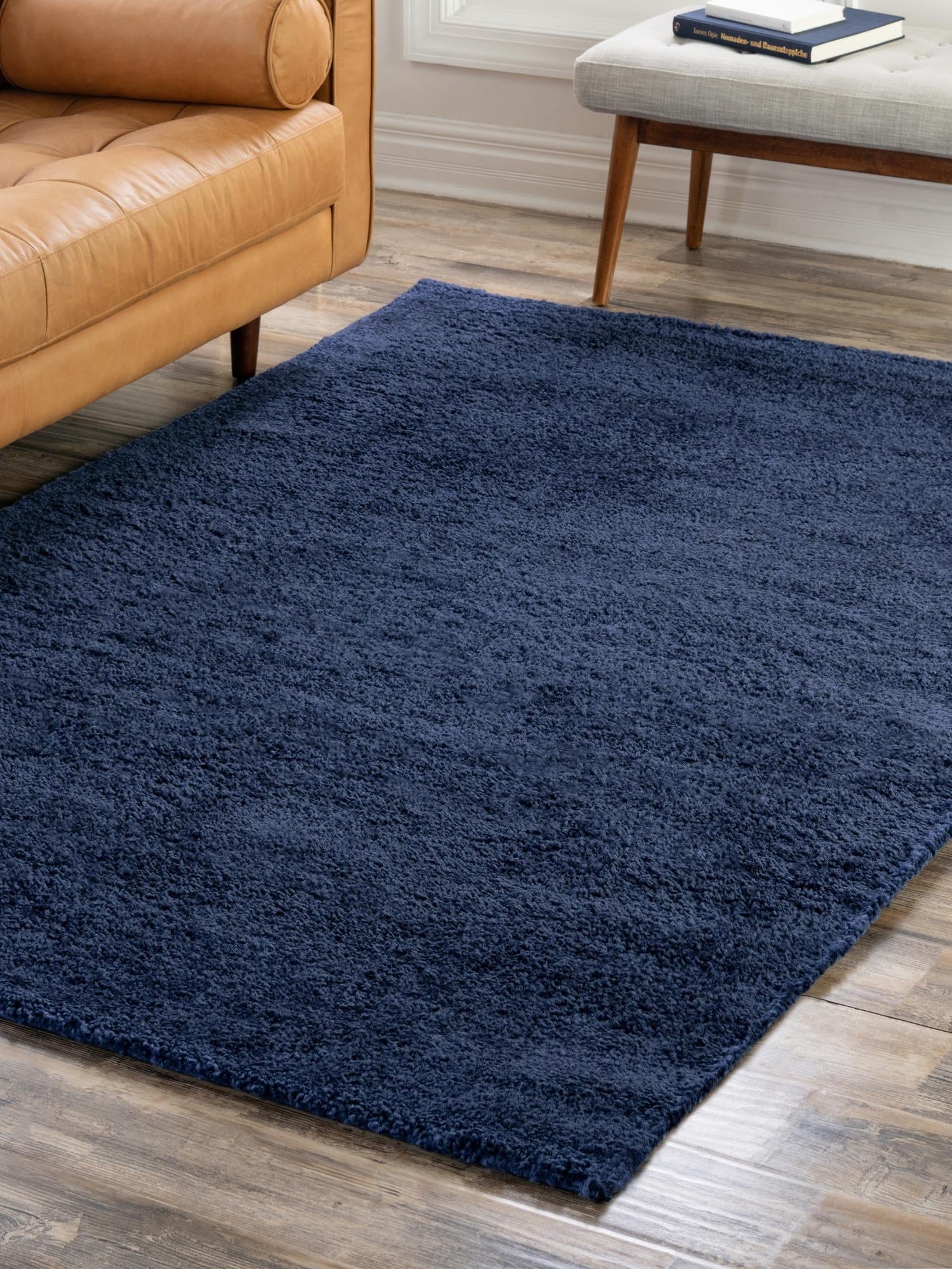 Navy Blue 5' 3 x 7' 7 Solo Rectangle Area Rug Thick Soft Touch Fluffy & Plush Shaggy Pile