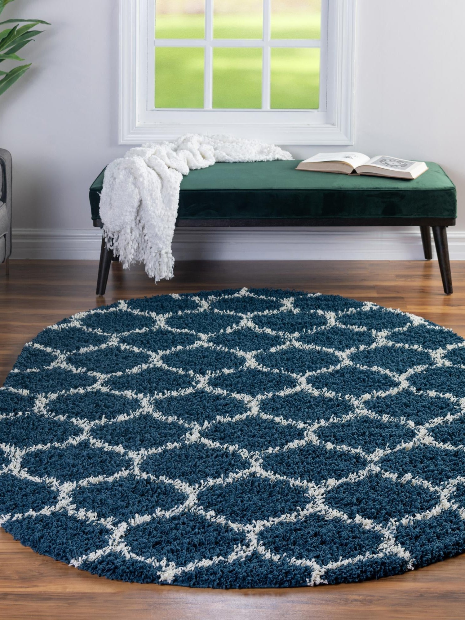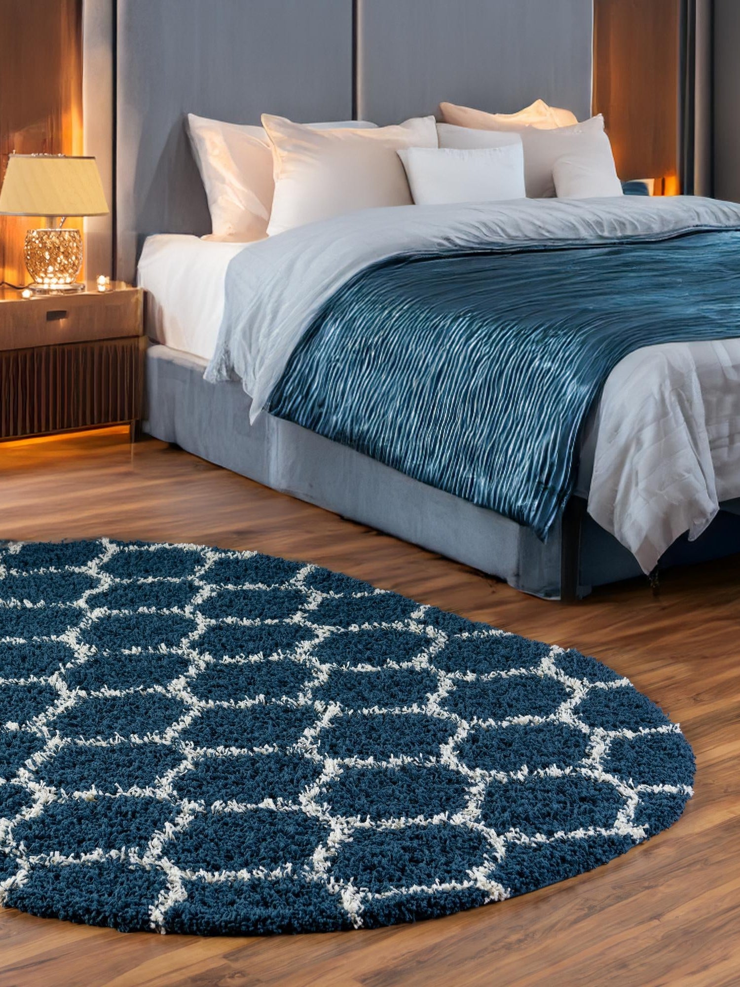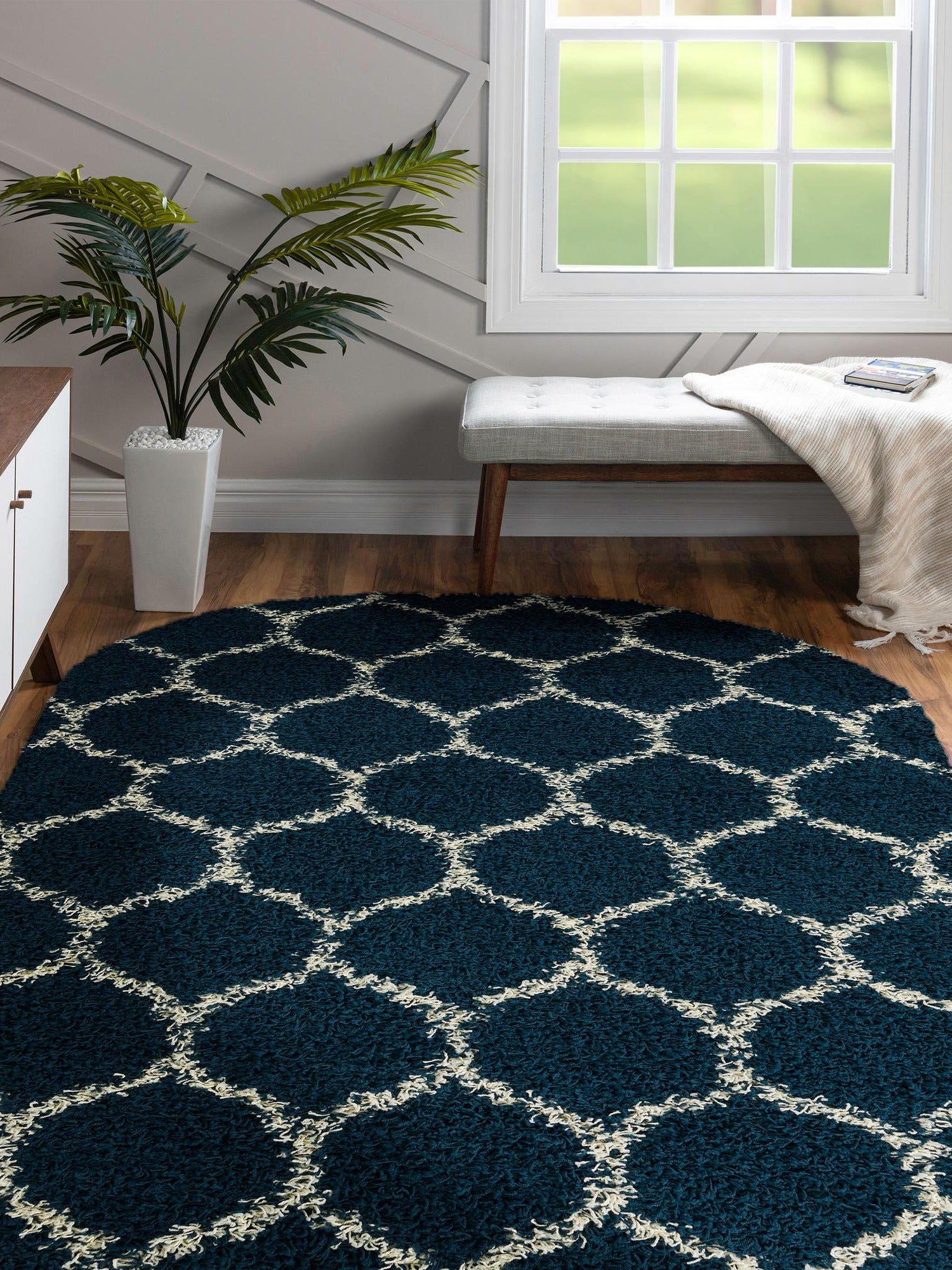 Navy Blue 5' 3 x 8' Trellis Shag Oval Area Rug Thick Soft Touch Fluffy & Plush Shaggy Pile