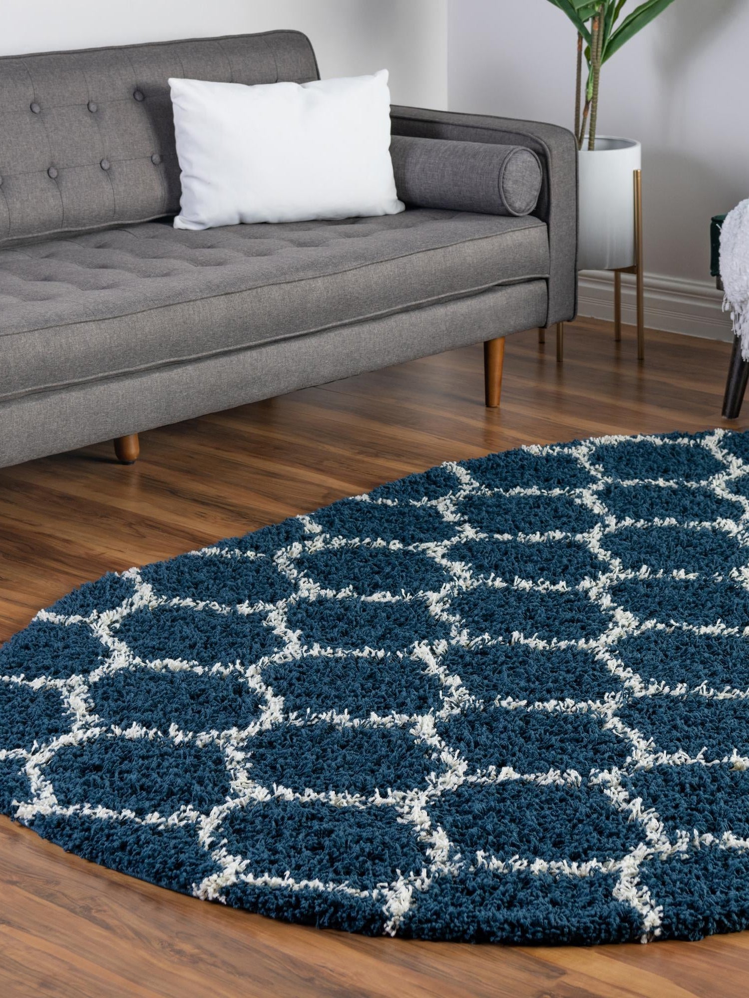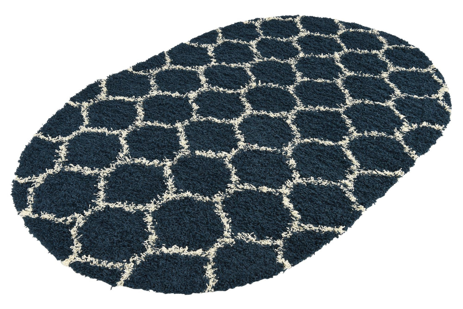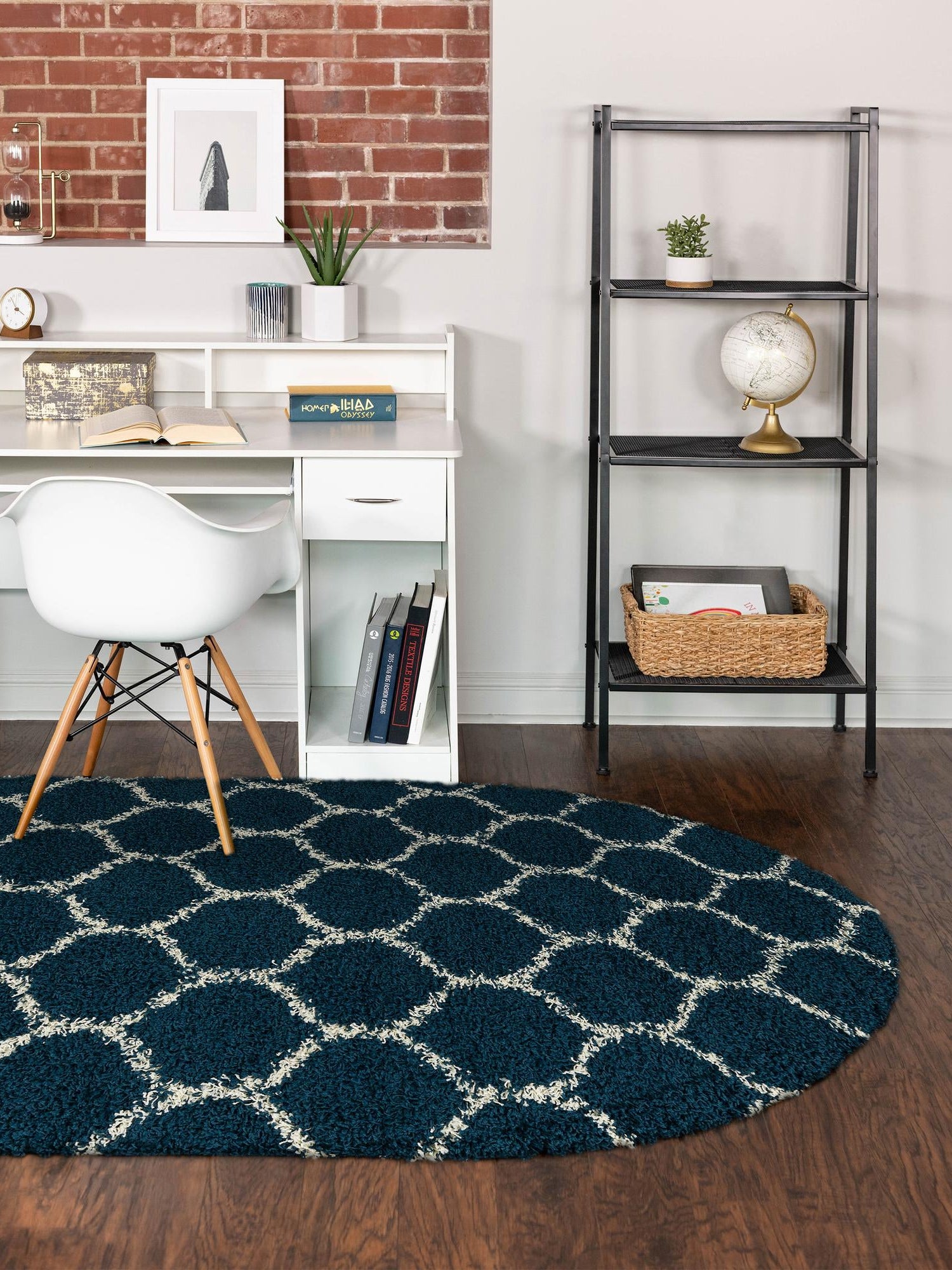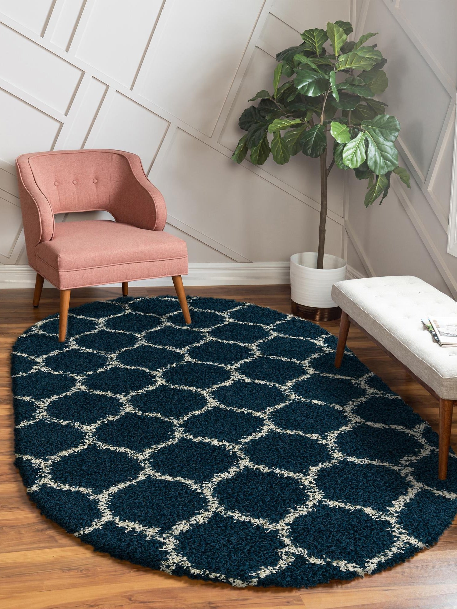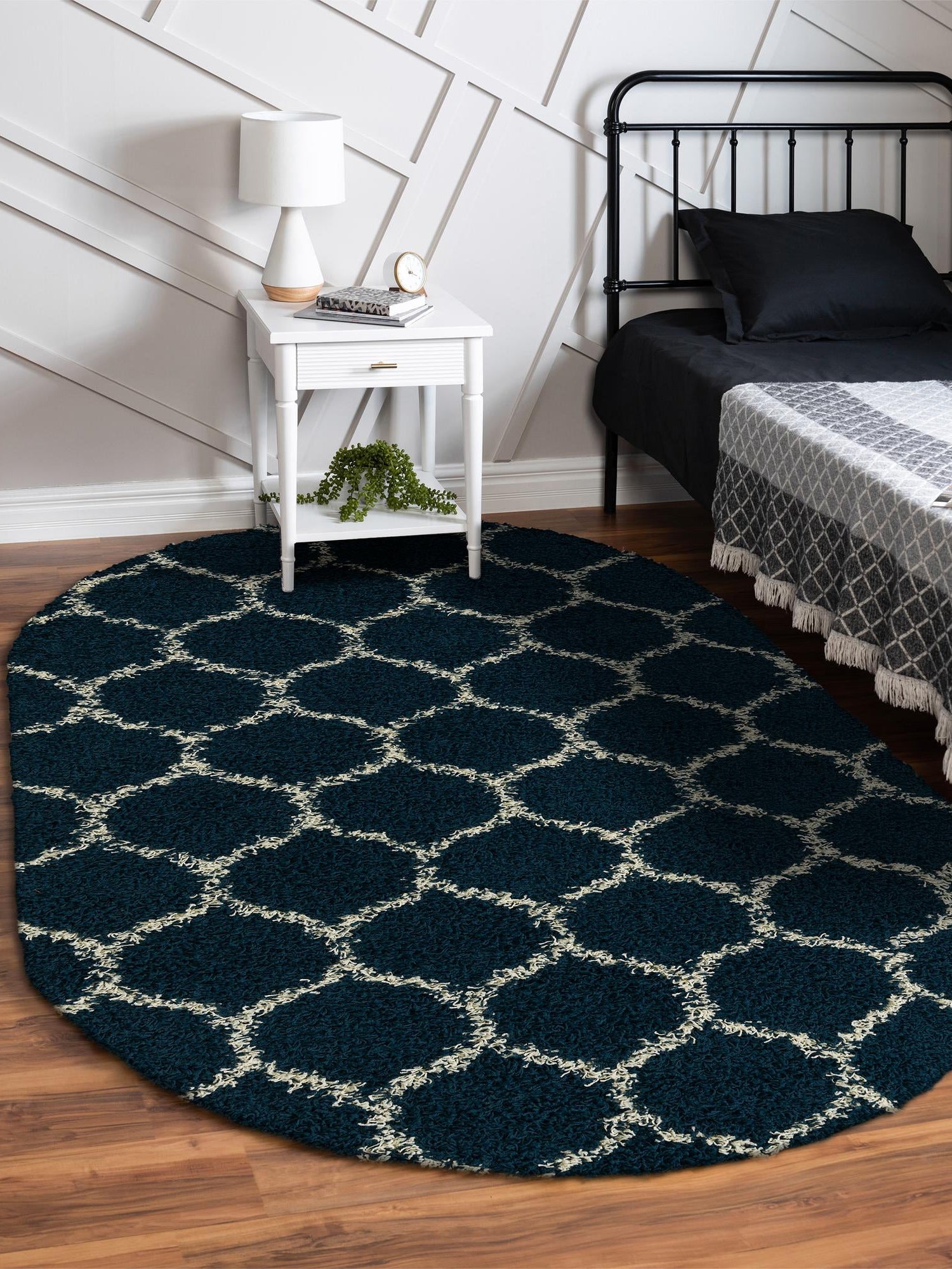Navy Blue 5' 3 x 8' Trellis Shag Oval Area Rug Thick Soft T...
