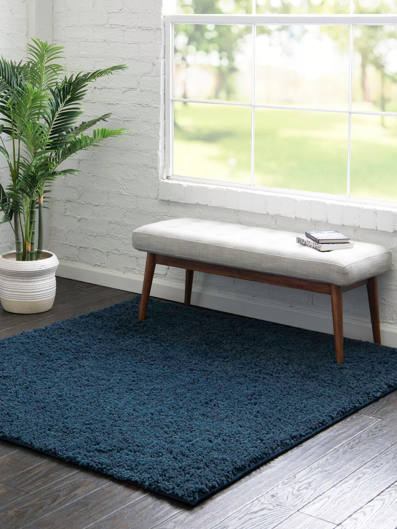 Navy Blue 5' x 5' Everyday Shag Square Area Rug Thick Soft ...
