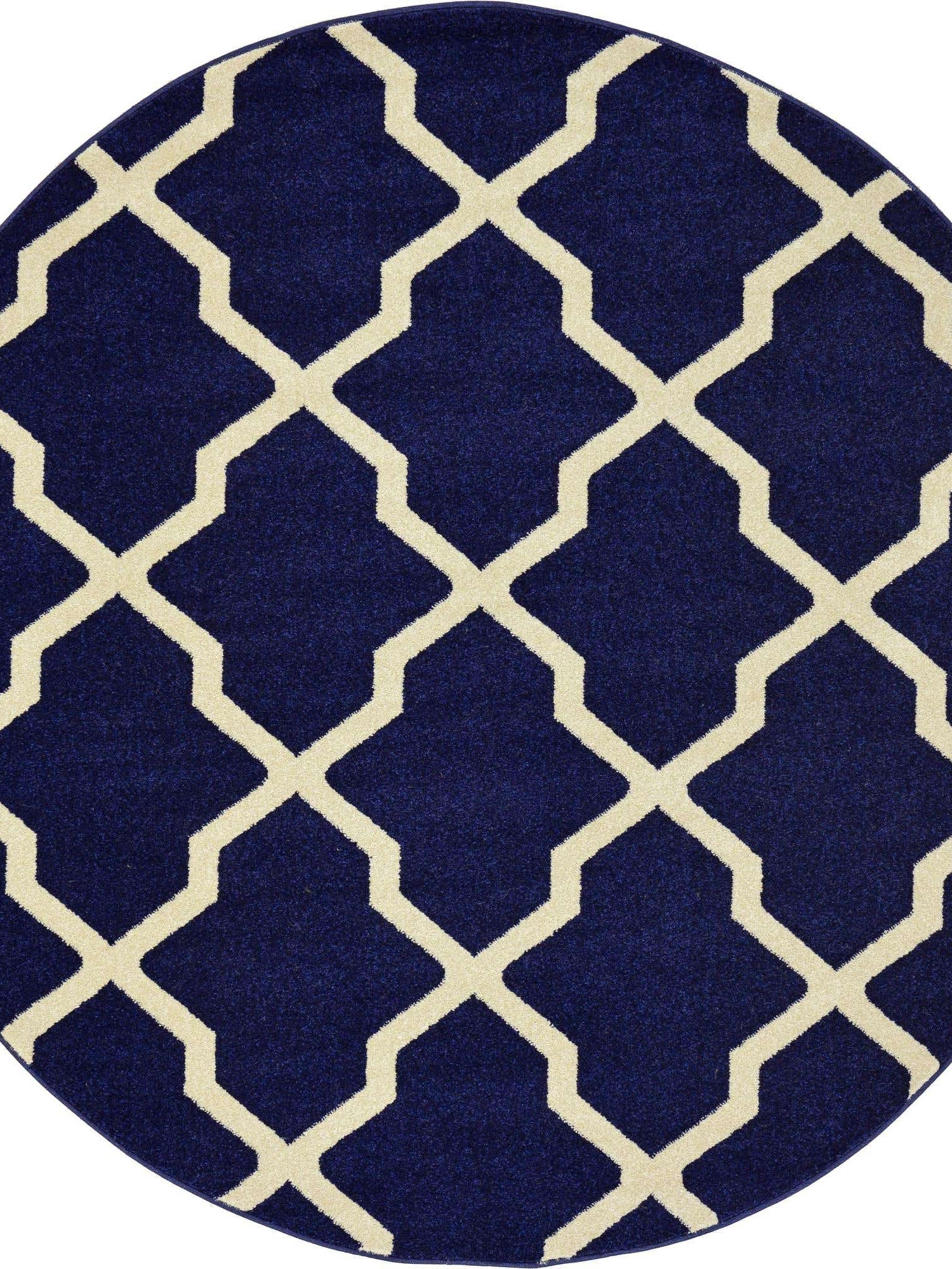 Navy Blue 6' 1 x 6' 1 Trellis Round Area Rug