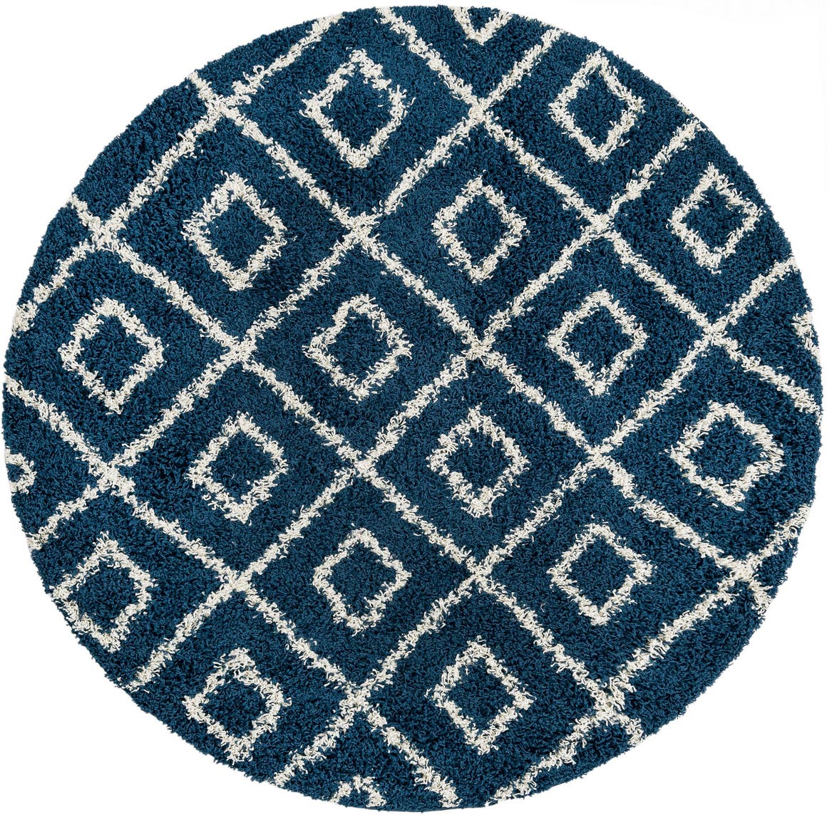 Navy Blue 6' x 6' Trellis Shag Round Area Rug Thick Soft To...