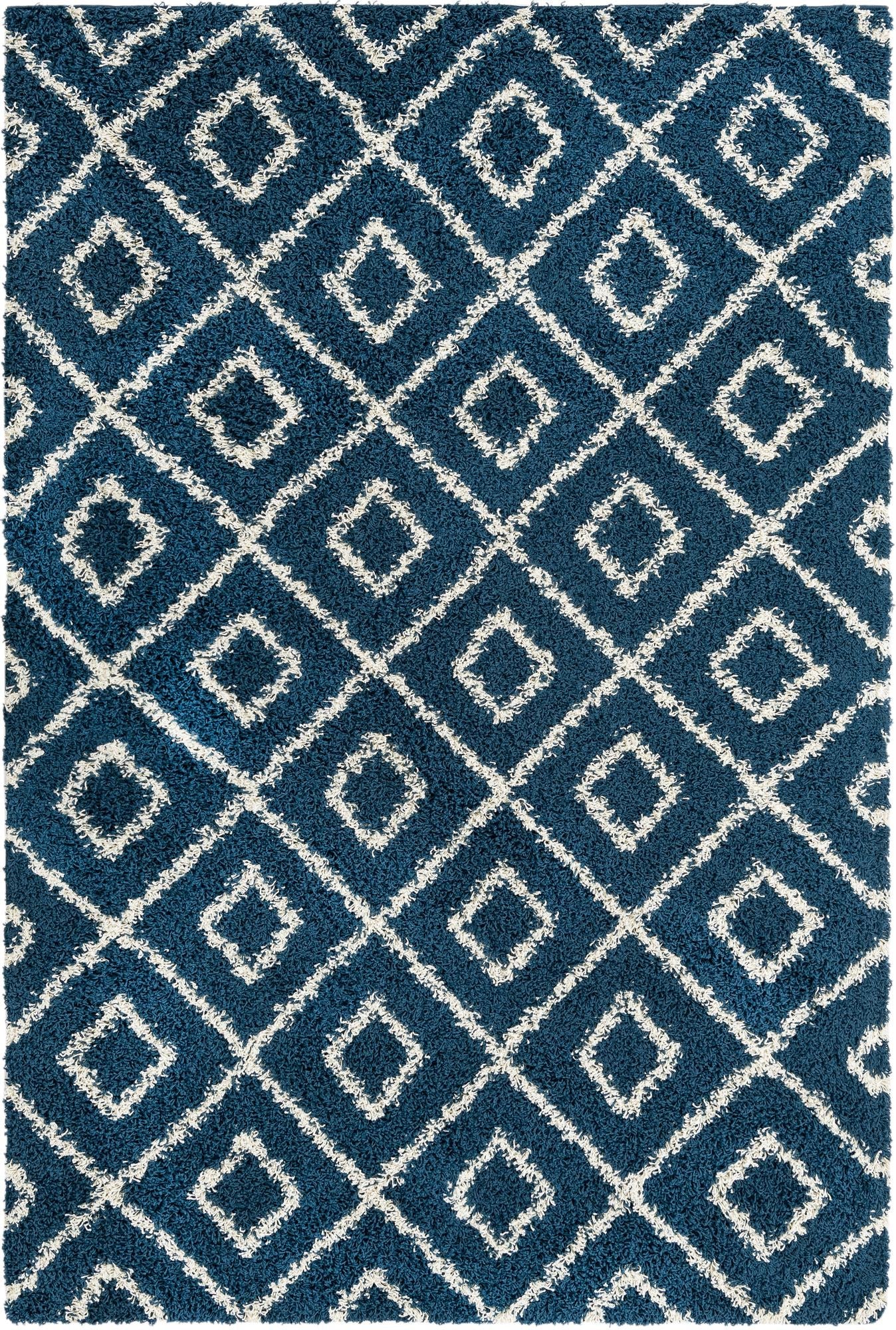 Navy Blue 6' x 9' Trellis Shag Rectangle Area Rug Thick Soft Touch Fluffy & Plush Shaggy Pile