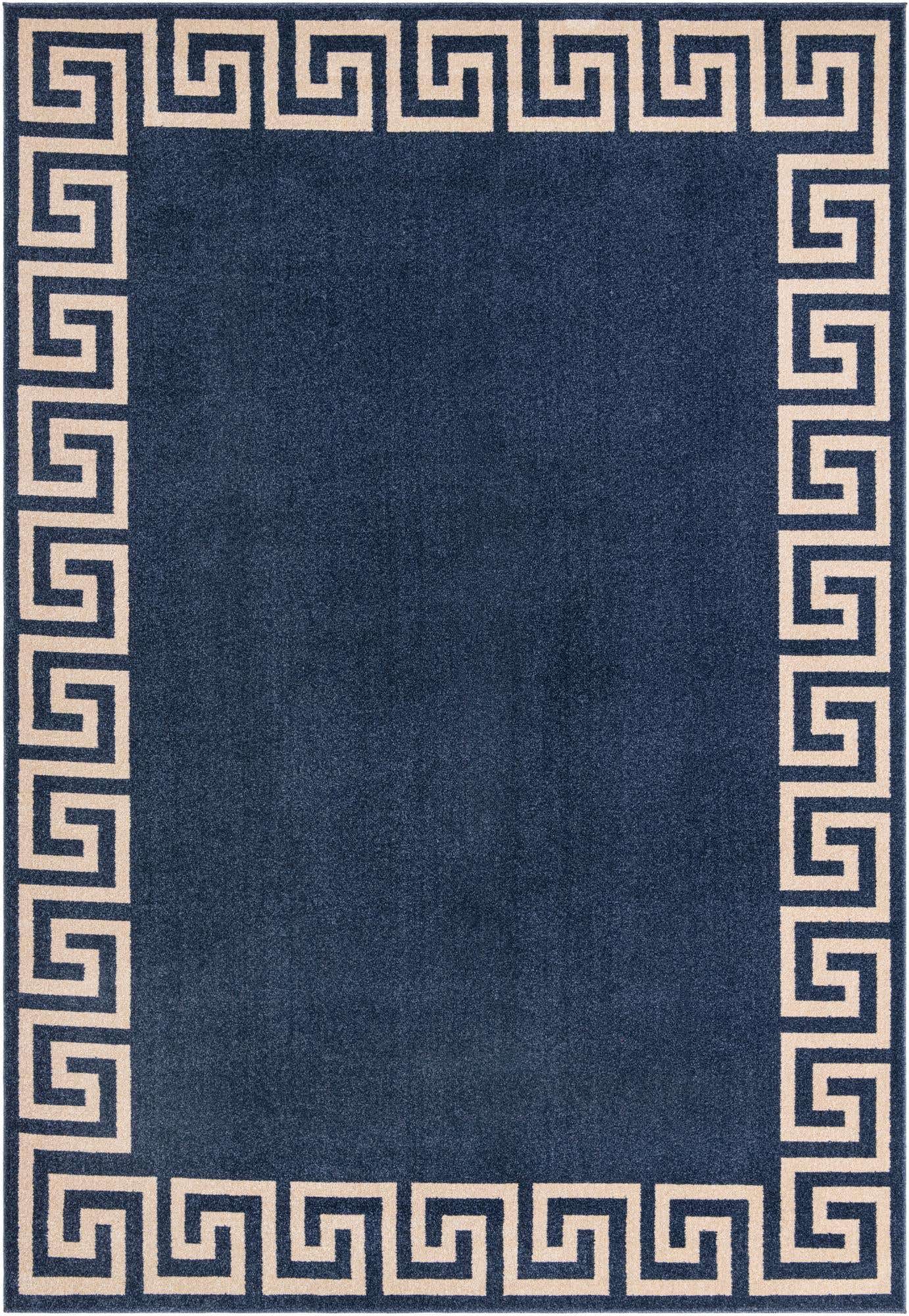 Navy Blue 7' 1 x 10' Athens Rectangle Area Rug 100% Polypropylene With Cotton Backing Easy Clean Indoor Living Dining Room Bedroom Office Carpet