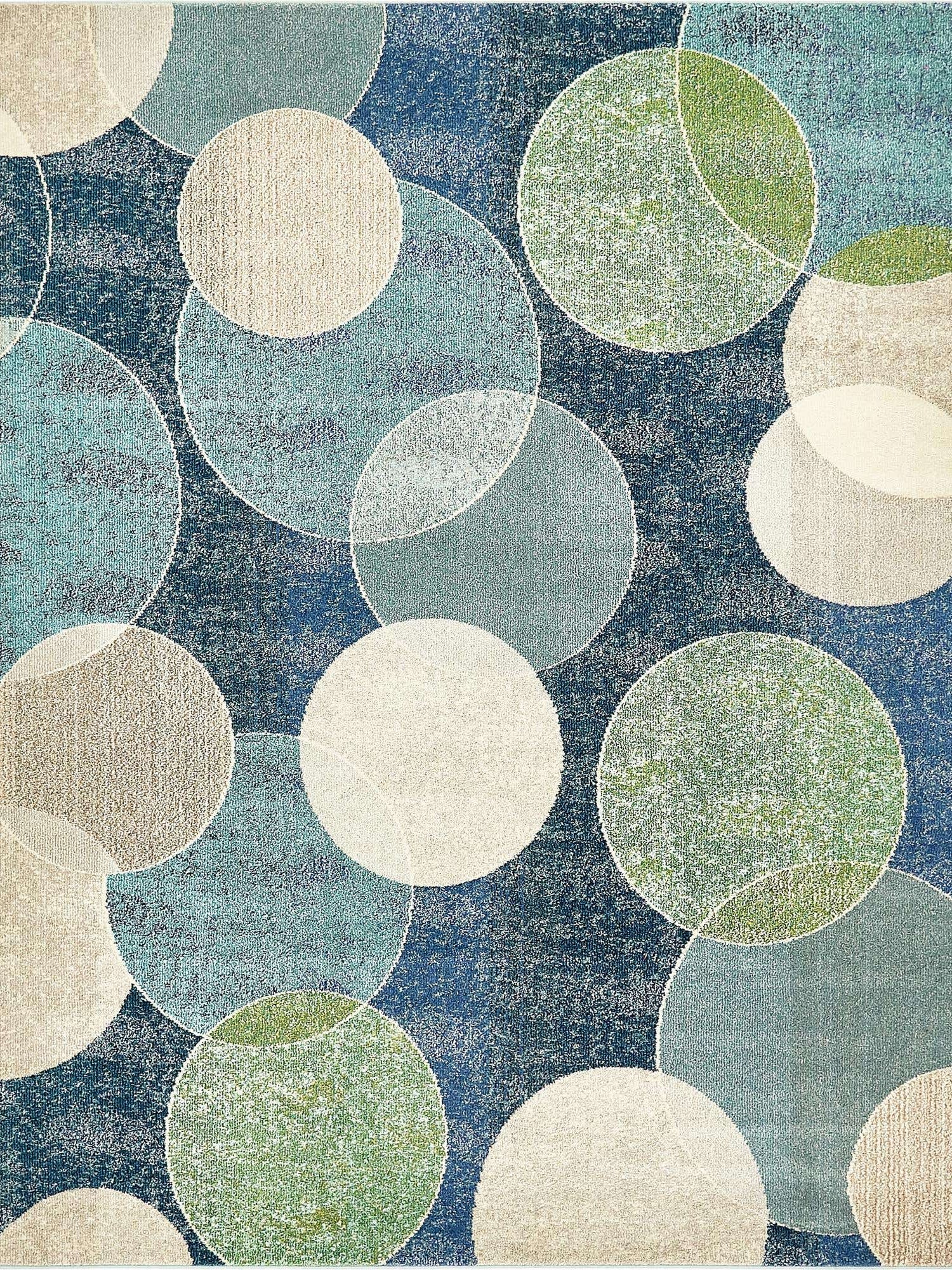 Navy Blue 8' x 10' Chromatic Rectangle Area Rug 100% Polypropylene With Cotton Backing Abstract Modern Colorful Carpet Mat for Home Decor & Interior Design