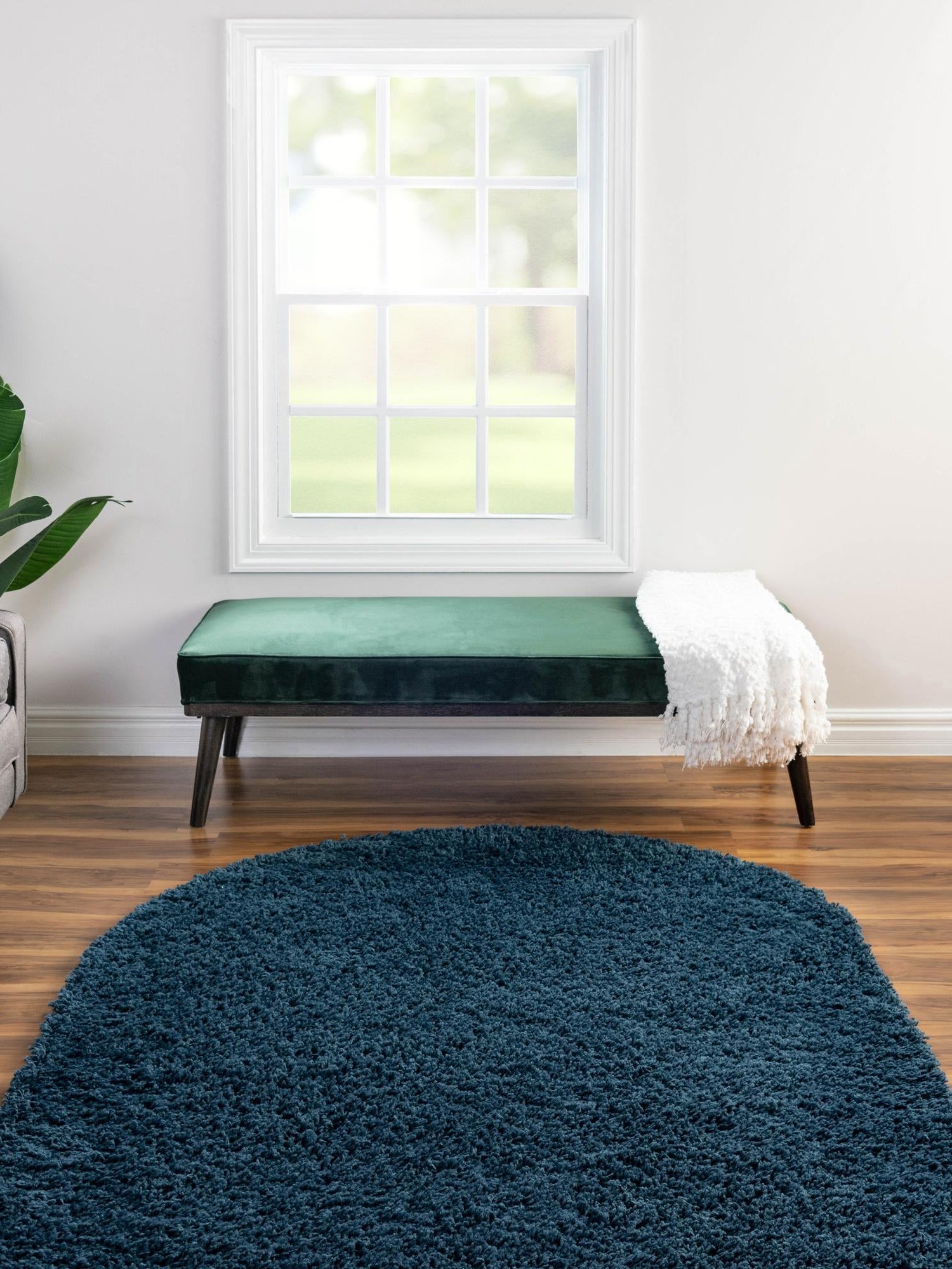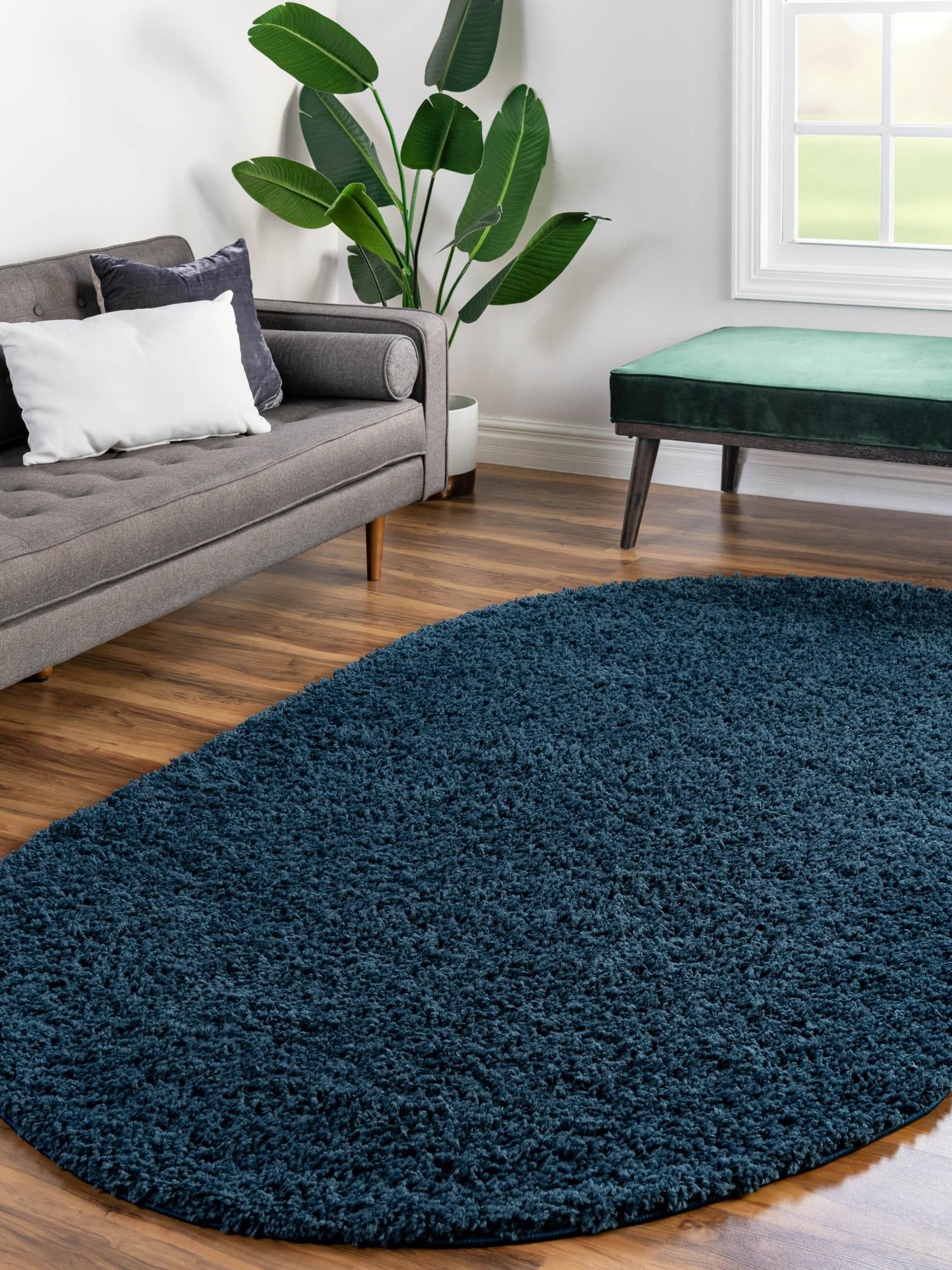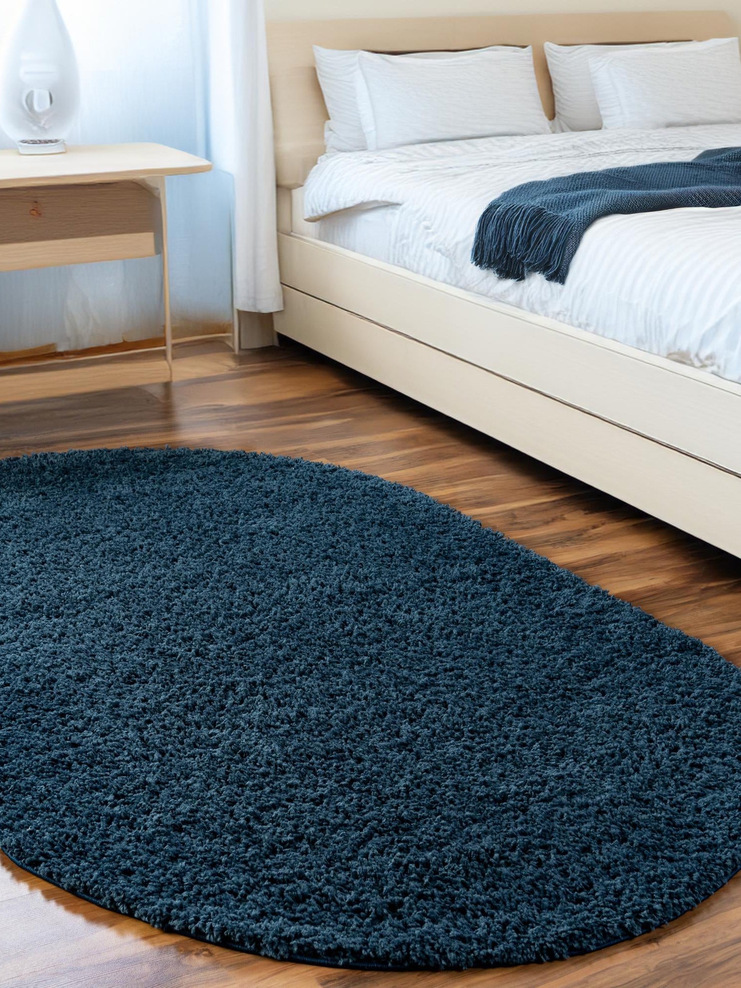 Navy Blue 8' x 10' Everyday Shag Oval Area Rug Thick Soft T...