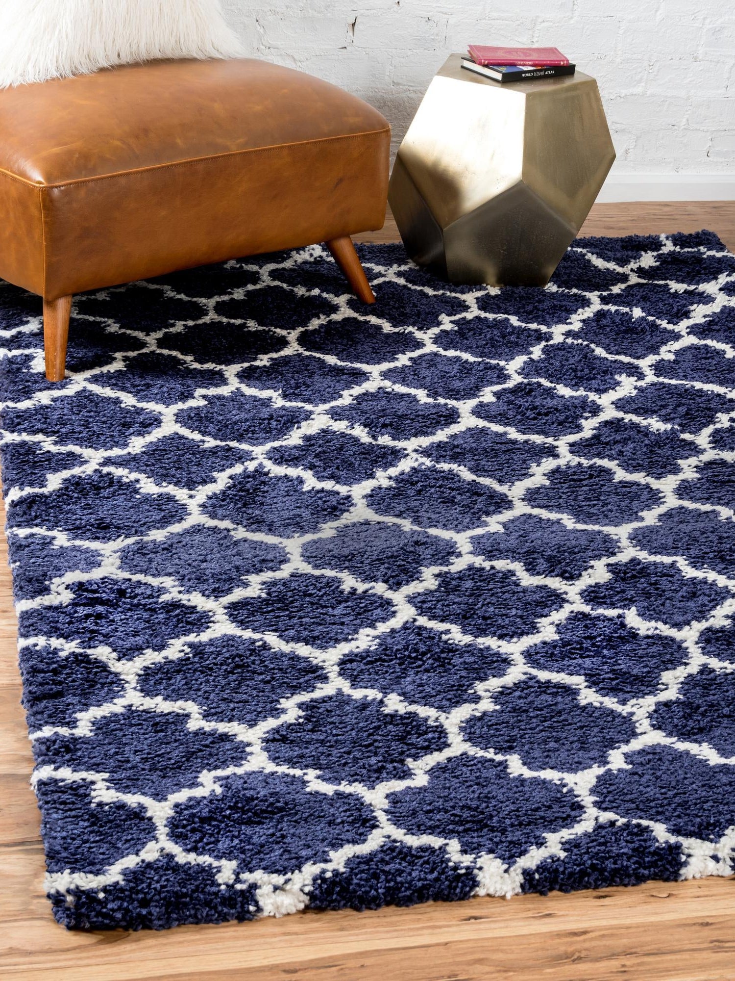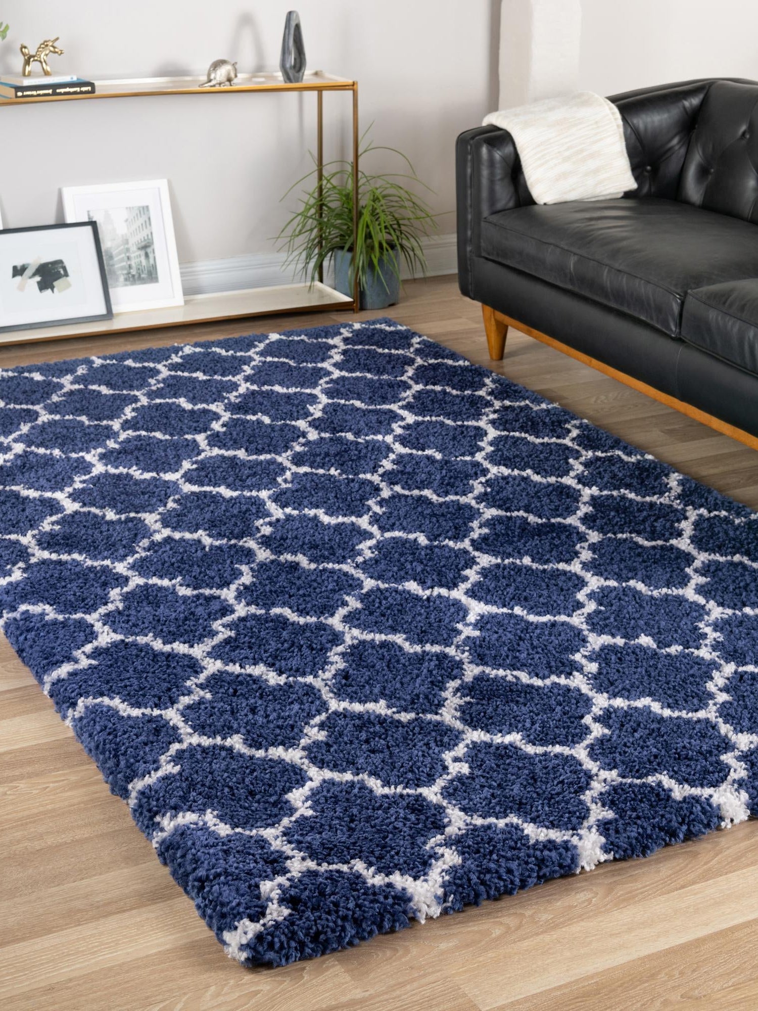 Navy Blue 7' 10 x 10' Rabat Shag Rectangle Area Rug Thick Soft Touch Fluffy & Plush Shaggy Pile