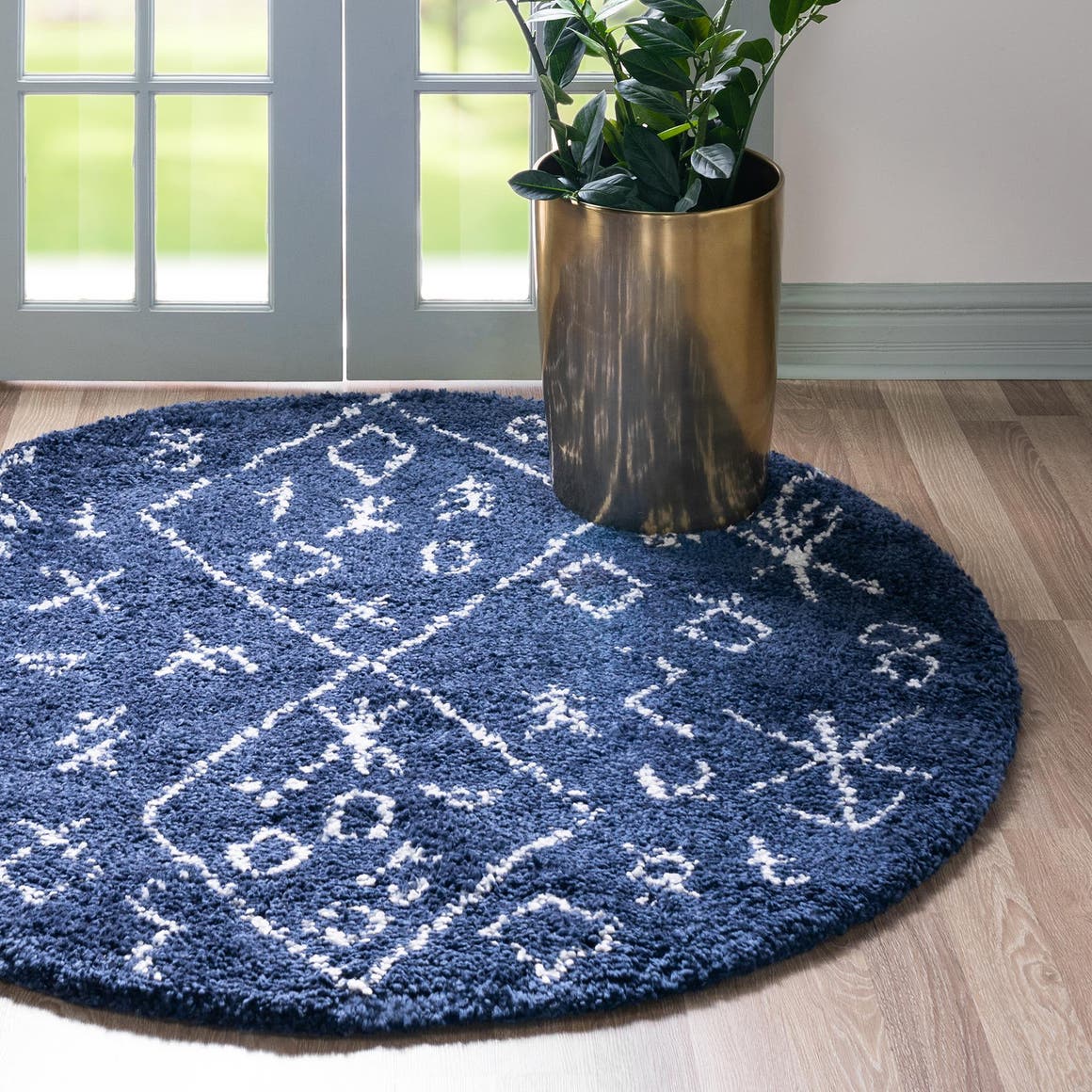 Navy Blue 8' x 8' Rabat Shag Round Area Rug Thick Soft Touc...