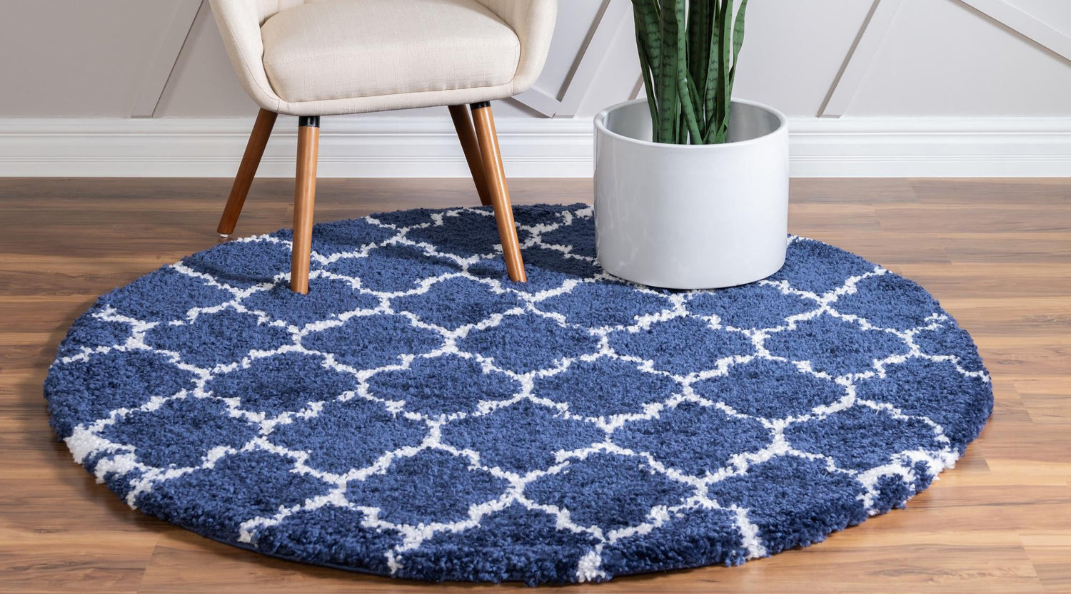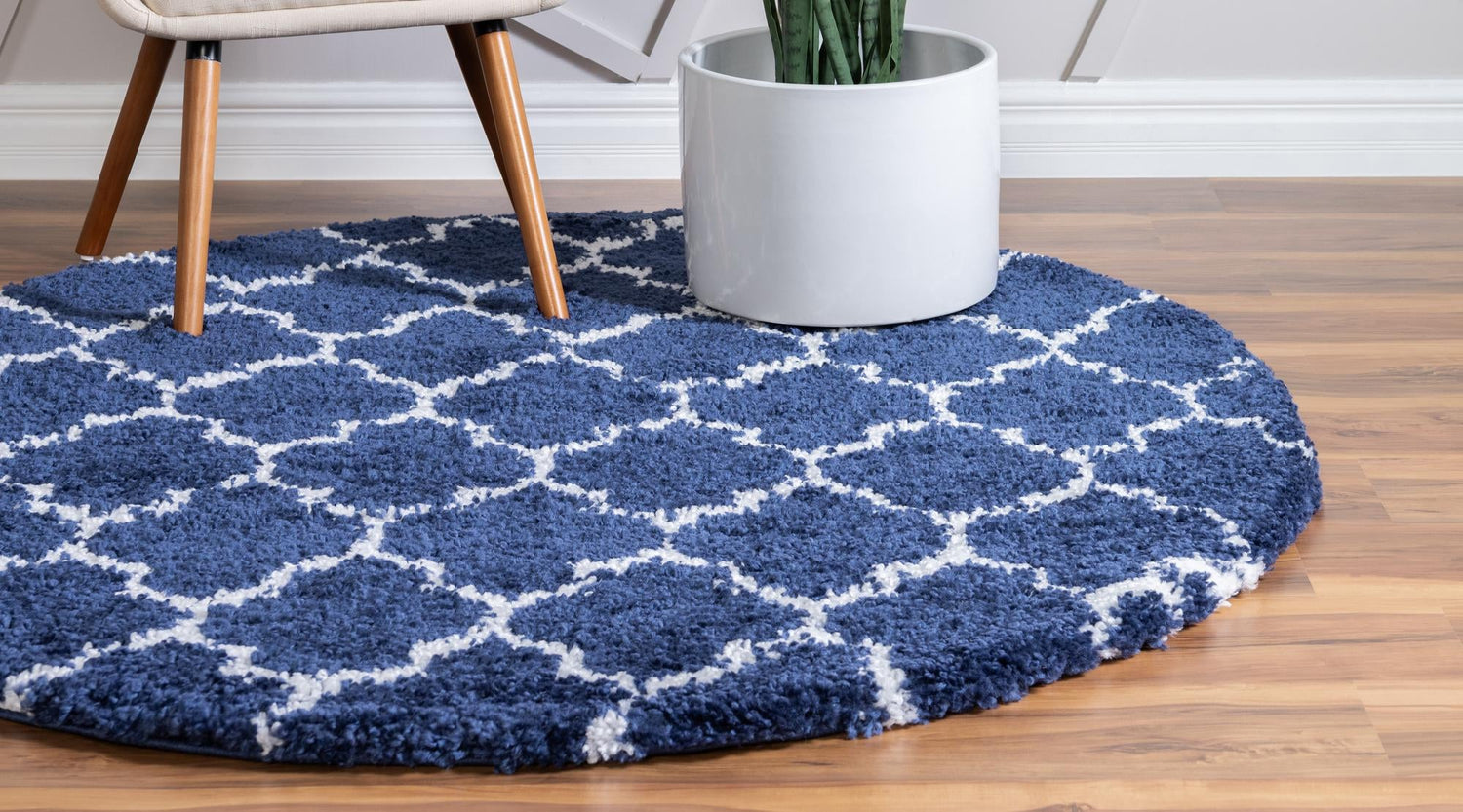 Navy Blue 8' x 8' Rabat Shag Round Area Rug Thick Soft Touc...