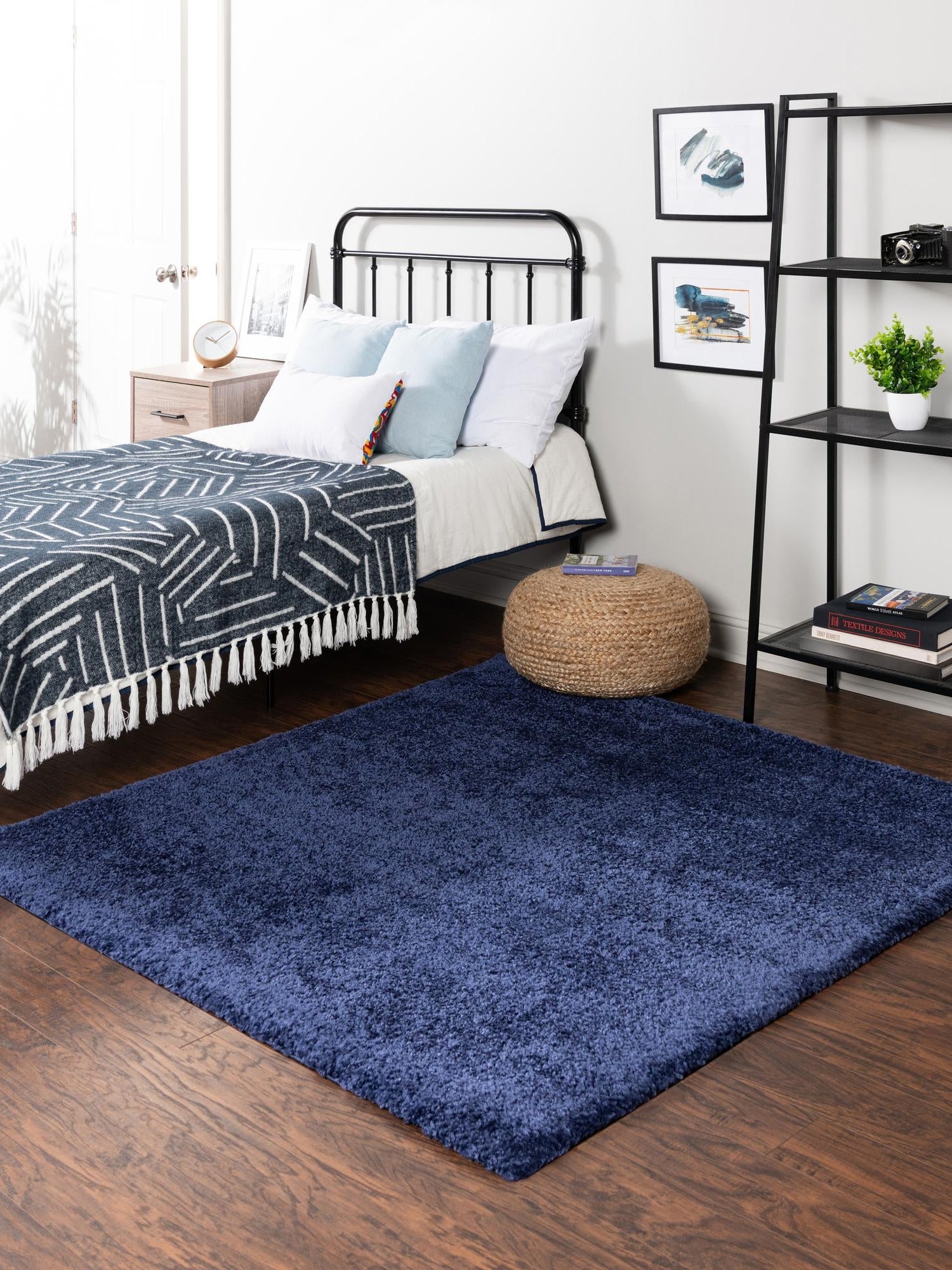 Navy Blue 7' 11 x 7' 11 Solo Square Area Rug Thick Soft Touch Fluffy & Plush Shaggy Pile